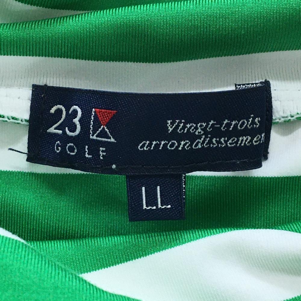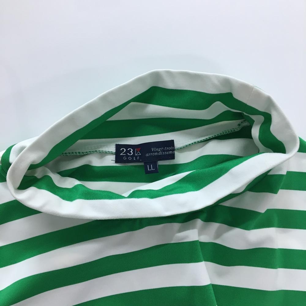 【美品】23区ゴルフ 長袖ハイネックシャツ 白×グリーン ボーダー メンズ LL ゴルフウェア 23区