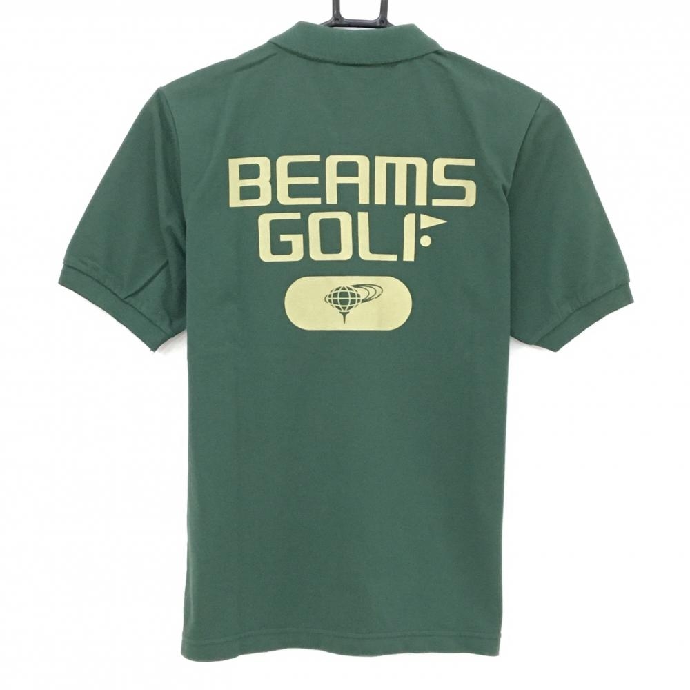 ビームスゴルフ 半袖ポロシャツ グリーン×ベージュ 背面ビッグロゴ メンズ S ゴルフウェア BEAMS GOLF