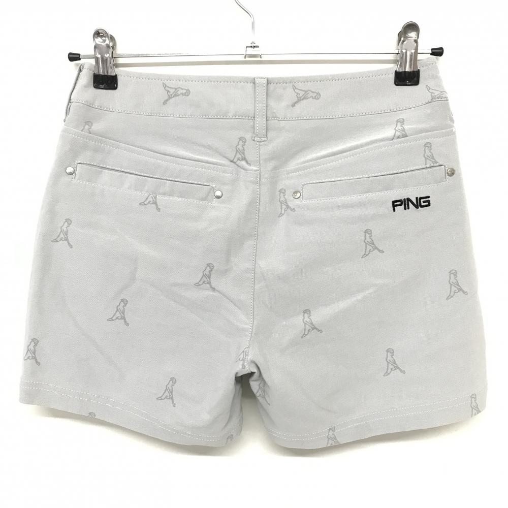 【超美品】ピン ハーフパンツ ライトグレー Mr.PING総柄 ストレッチ レディース S ゴルフウェア PING