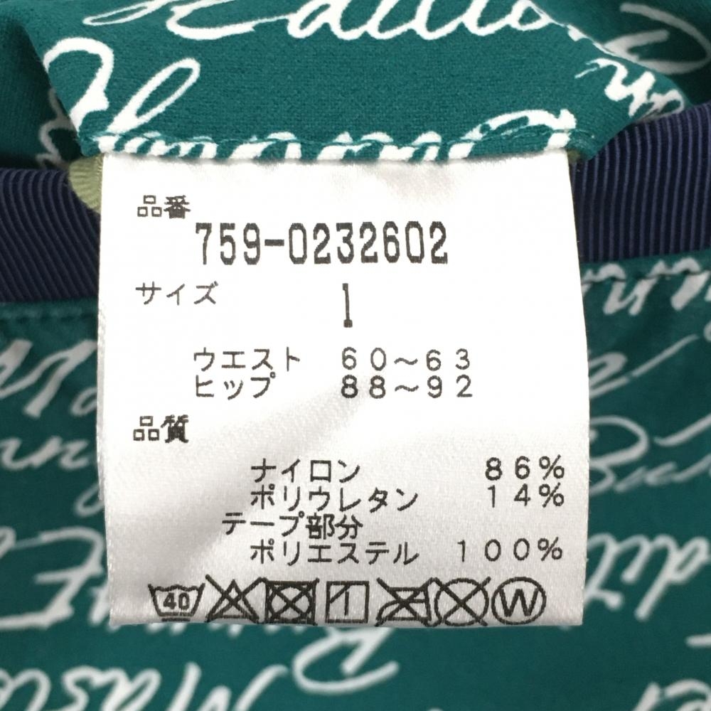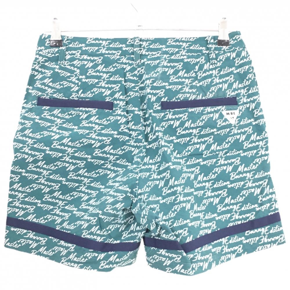 【美品】マスターバニー ショートパンツ グリーン×白 ロゴ総柄 ストレッチ レディース 1(M) ゴルフウェア MASTER BUNNY EDITION