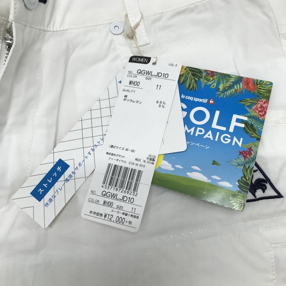 【新品】ルコックゴルフ パンツ 白 ストレッチ ティー装着可 ソフトフィットウエスト レディース 11 ゴルフウェア le coq sportif