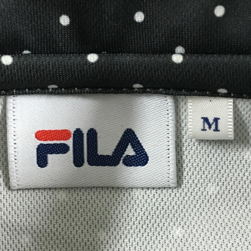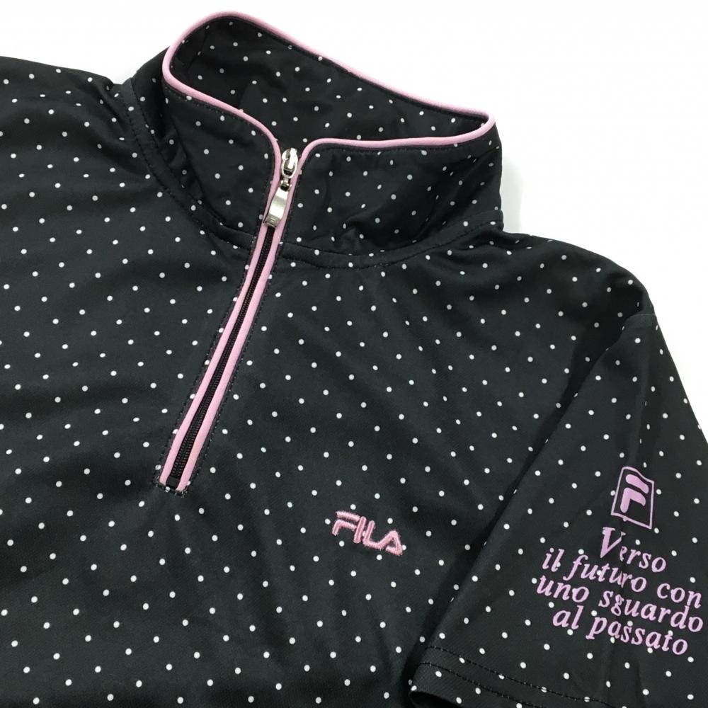 【超美品】フィラ 半袖ハイネックシャツ 黒×白 ドット パイピングライン ハーフジップ ロゴ刺しゅう レディース M ゴルフウェア FILA GOLF