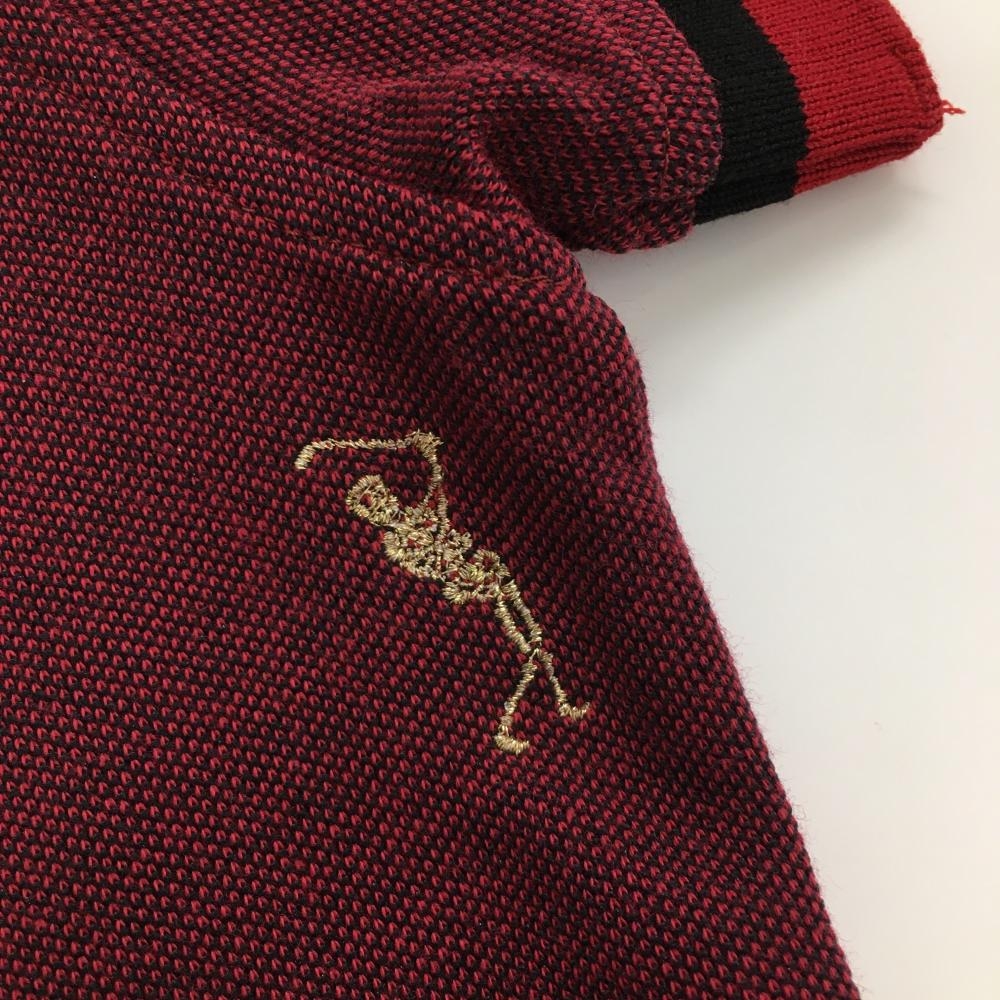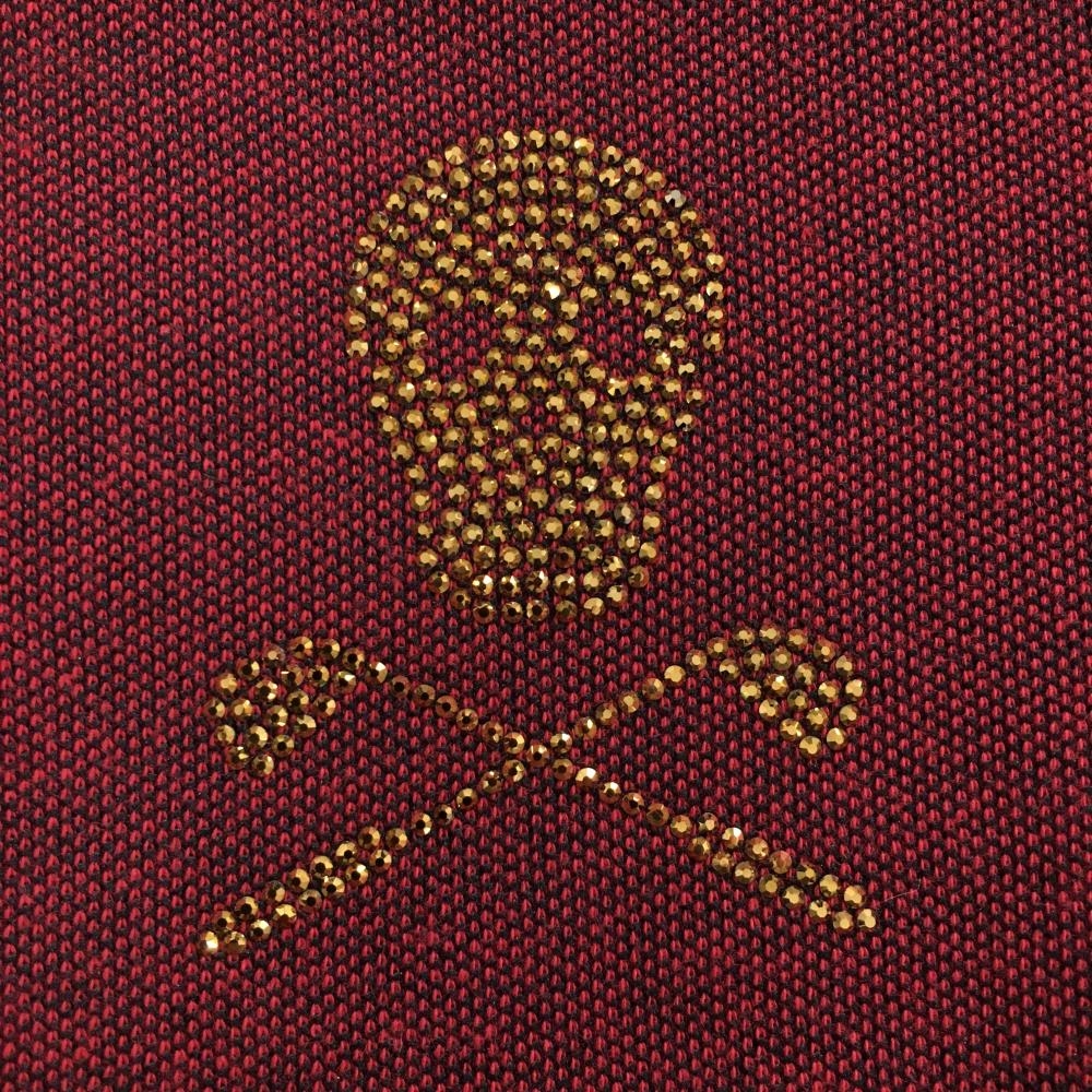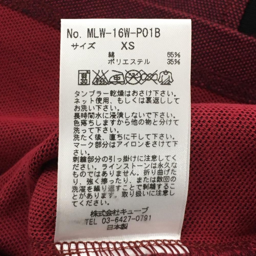 【美品】マークアンドロナ 半袖ポロシャツ ボルドー×黒 ラインストーンスカル 襟裏ロゴ レディース XS ゴルフウェア MARK&LONA