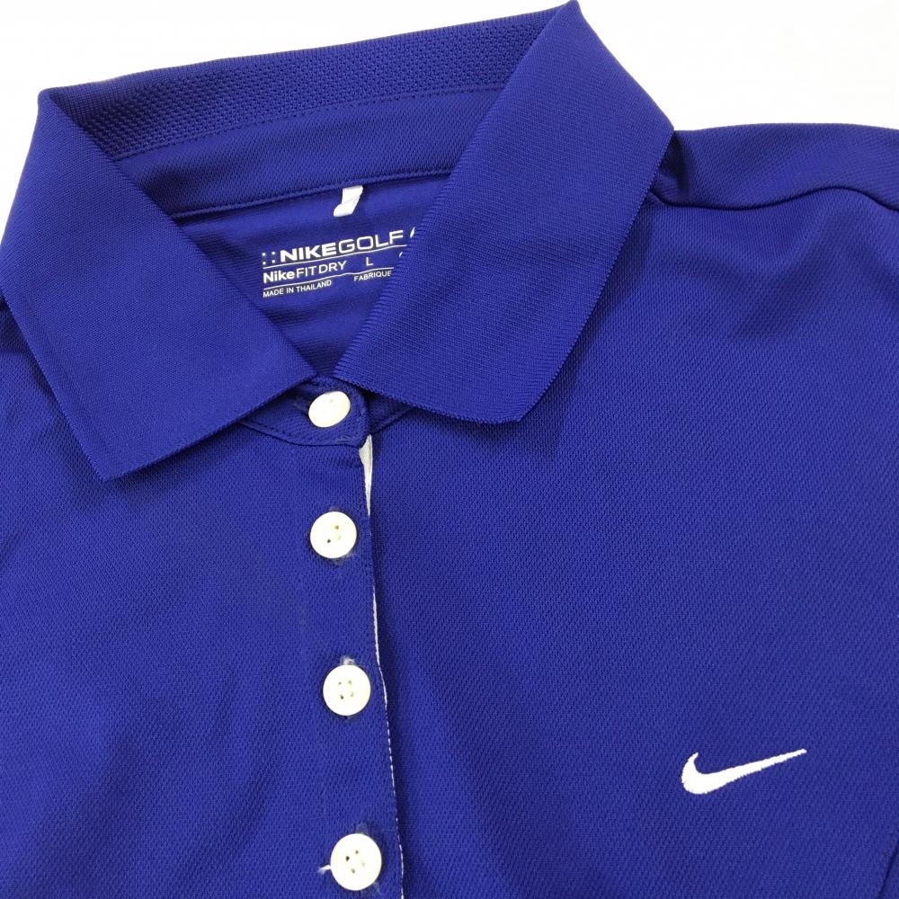 【超美品】ナイキゴルフ 半袖ポロシャツ ブルーネイビー ロゴ刺しゅう FITDRY レディース LGG ゴルフウェア NIKE
