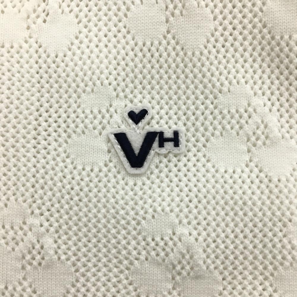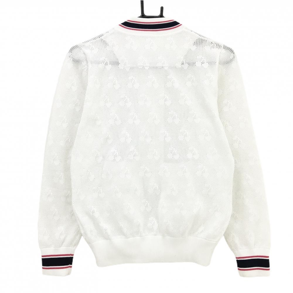 ビバハート ニットブルゾン 白×ネイビー 透かし編み チェリー ロゴワッペン レディース 40(M) ゴルフウェア VIVA HEART