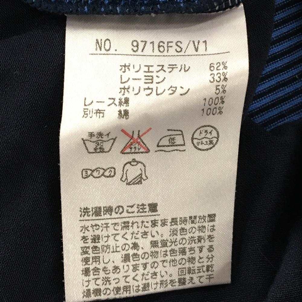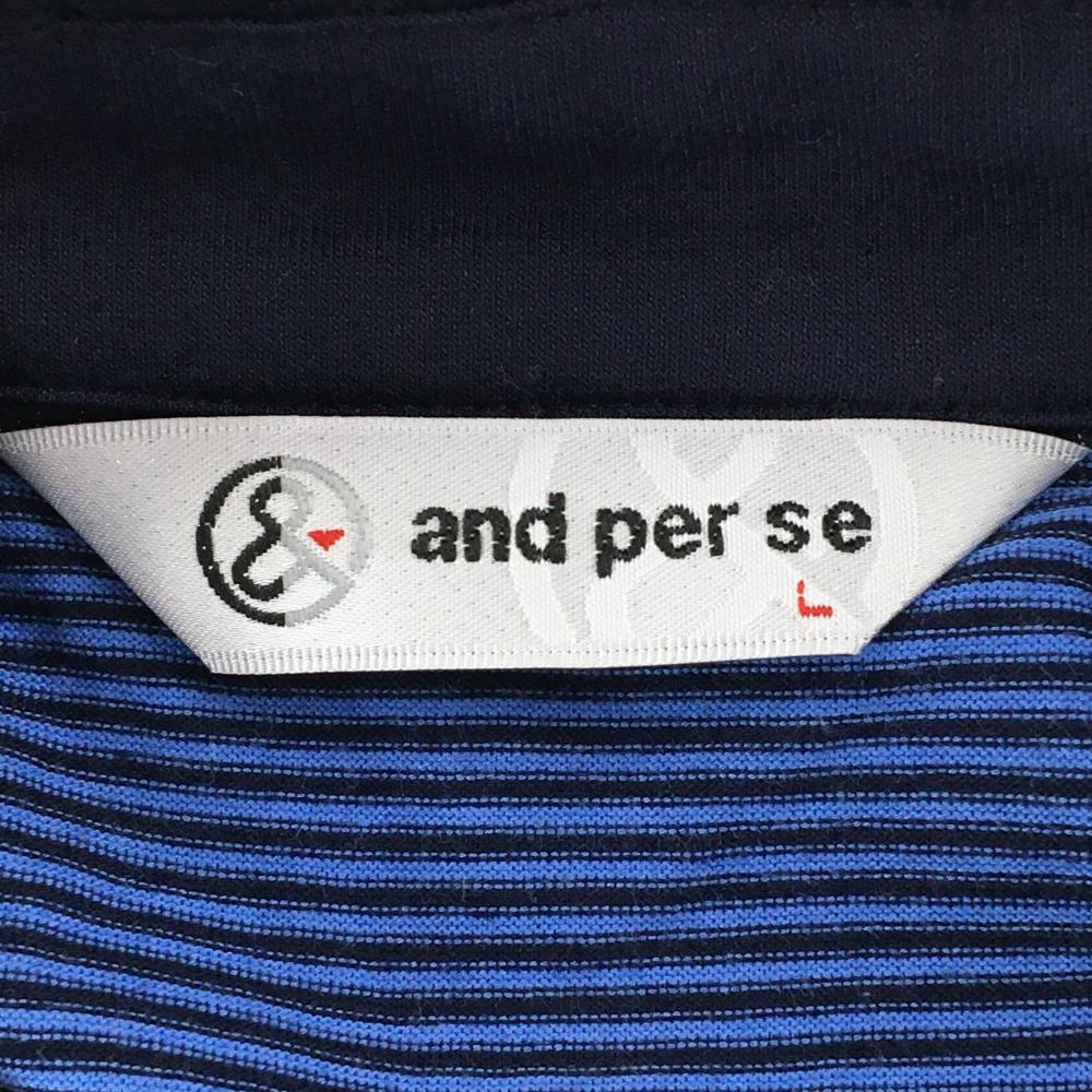 【美品】アンパスィ 半袖ポロシャツ ネイビー 背面ボーダー 襟レース調 ロゴワッペン レディース L ゴルフウェア and per se