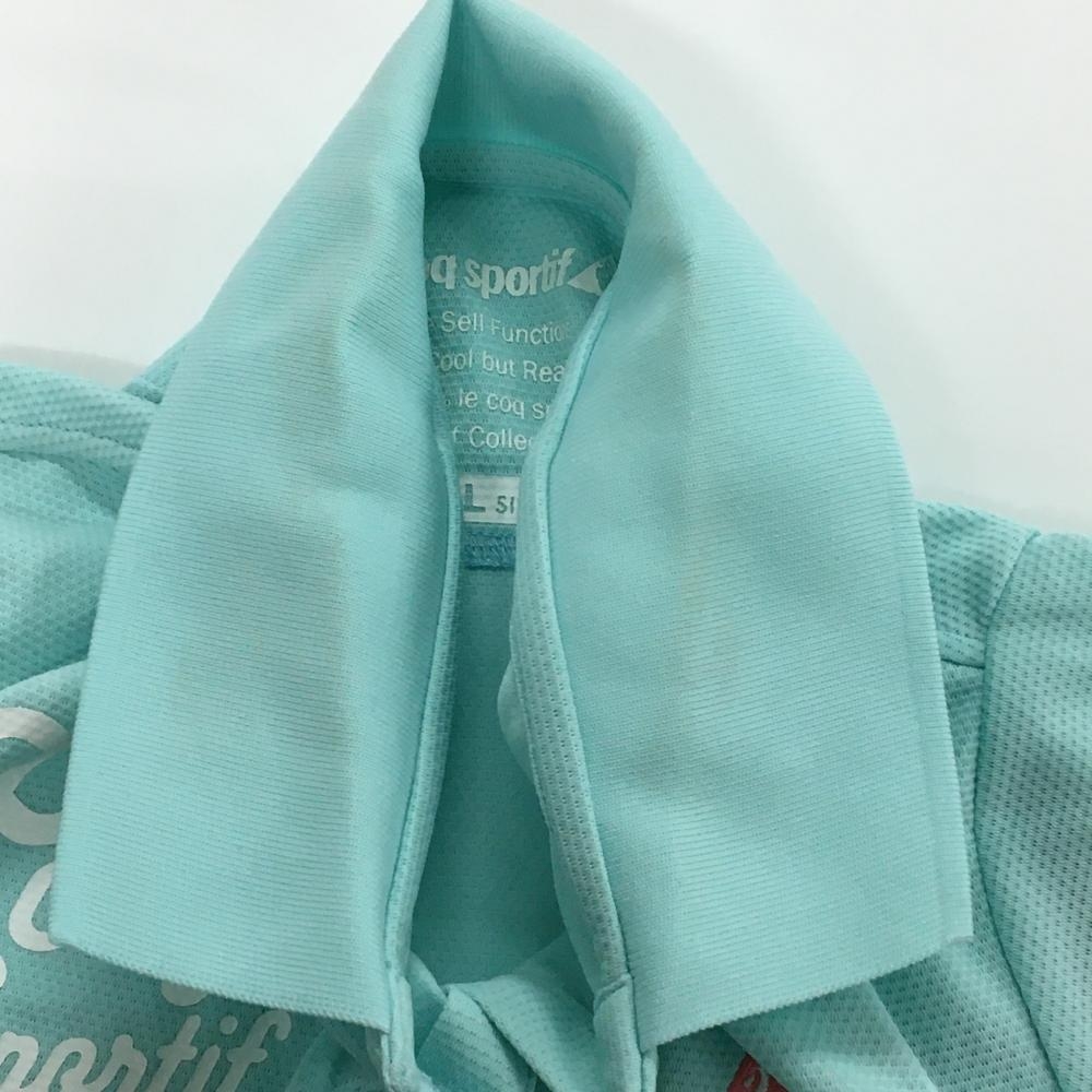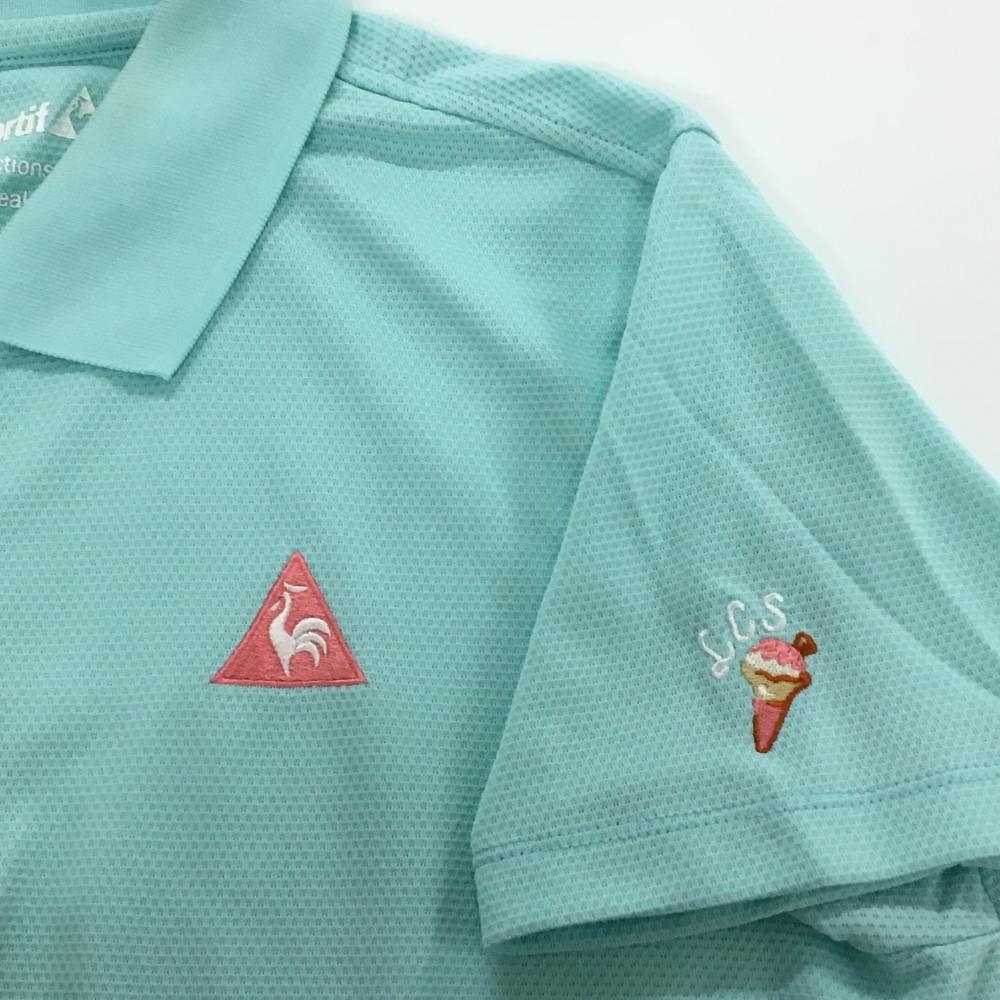 ルコックゴルフ 半袖ポロシャツ ライトブルー系×白 胸ロゴ レディース LL ゴルフウェア le coq sportif