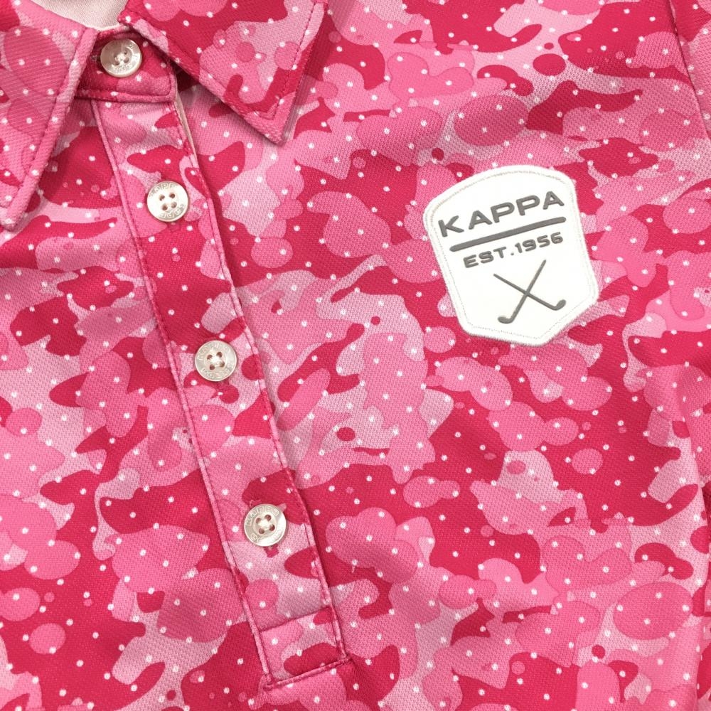 【超美品】カッパ 半袖ポロシャツ ピンク×白 カモフラ調 ピンドット レディース S ゴルフウェア Kappa