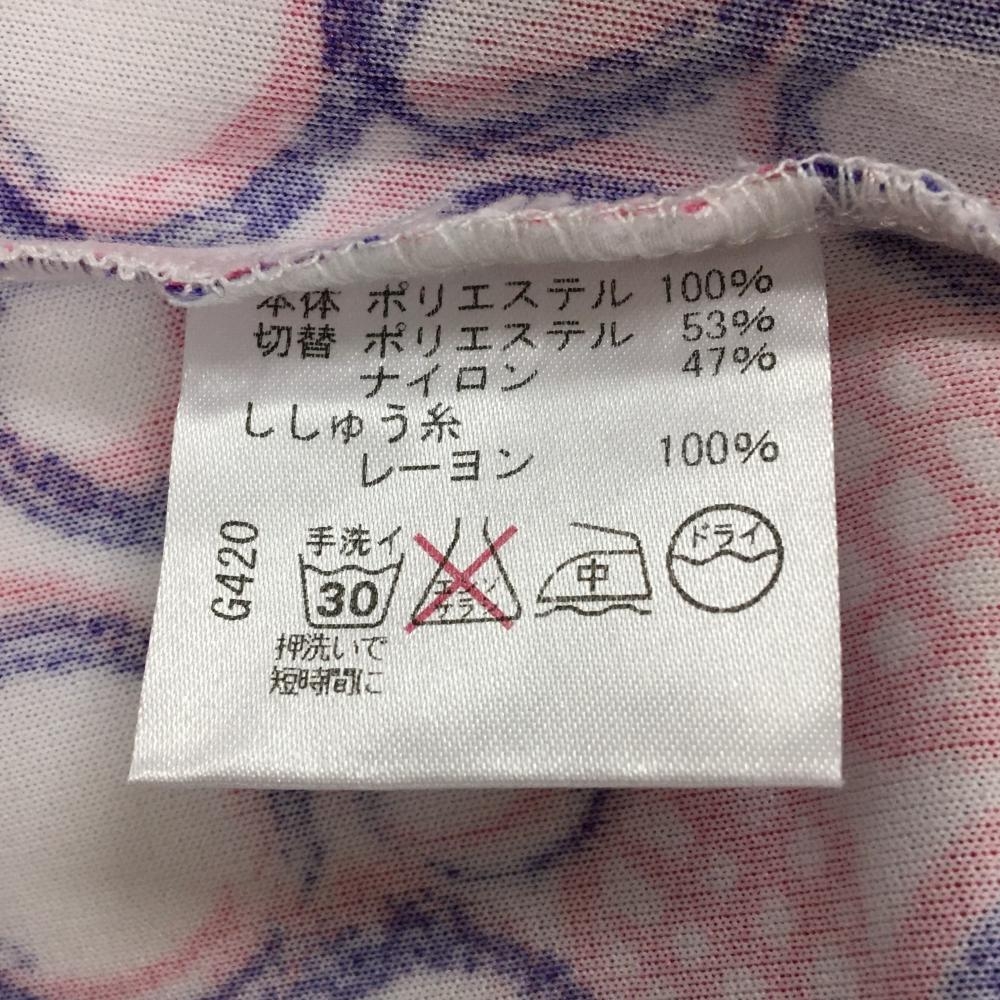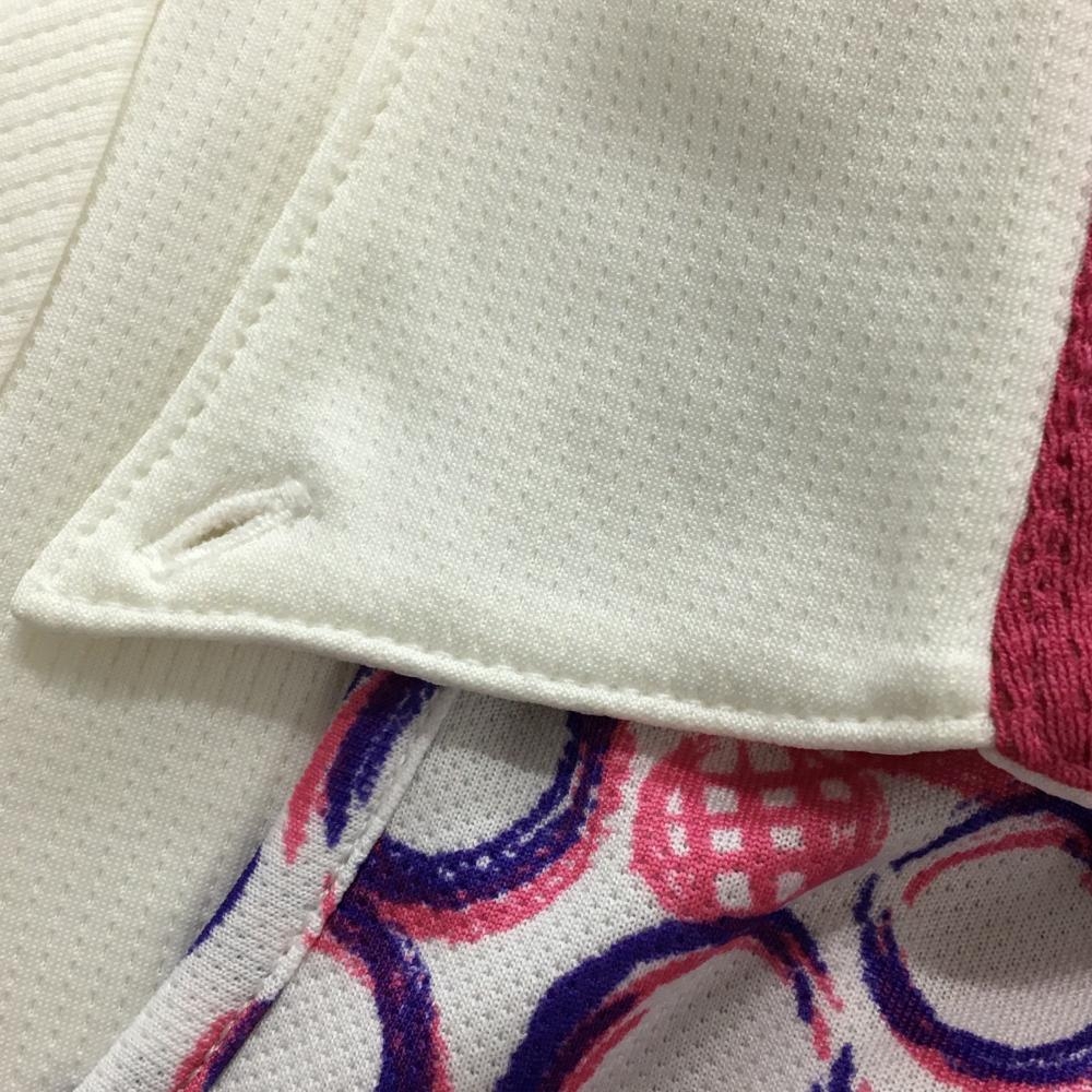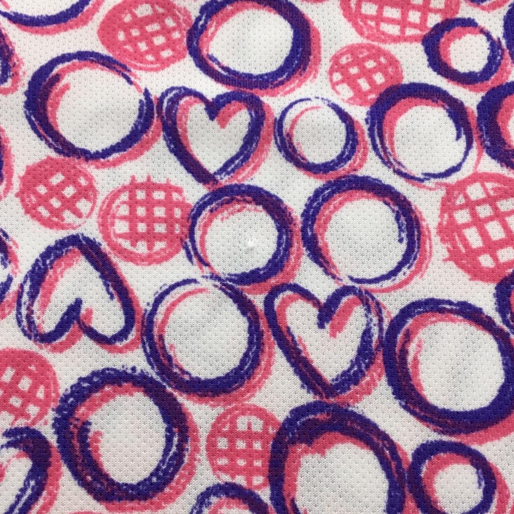 ビバハート 半袖ポロシャツ 白×ピンク レイヤード風 手書き風総柄 ハート レディース 42(L) ゴルフウェア VIVA HEART