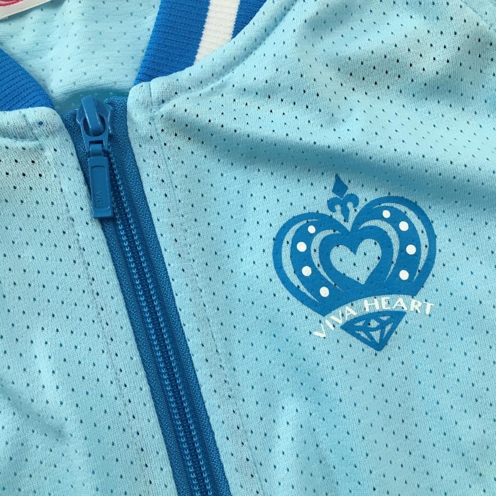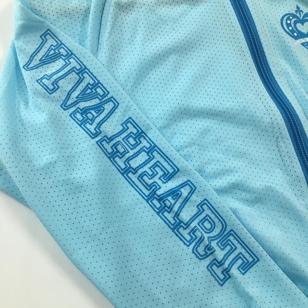 【超美品】ビバハート ブルゾン ライトブルー×ブルー メッシュ生地 ロゴプリント レディース 40(M) ゴルフウェア VIVA HEART