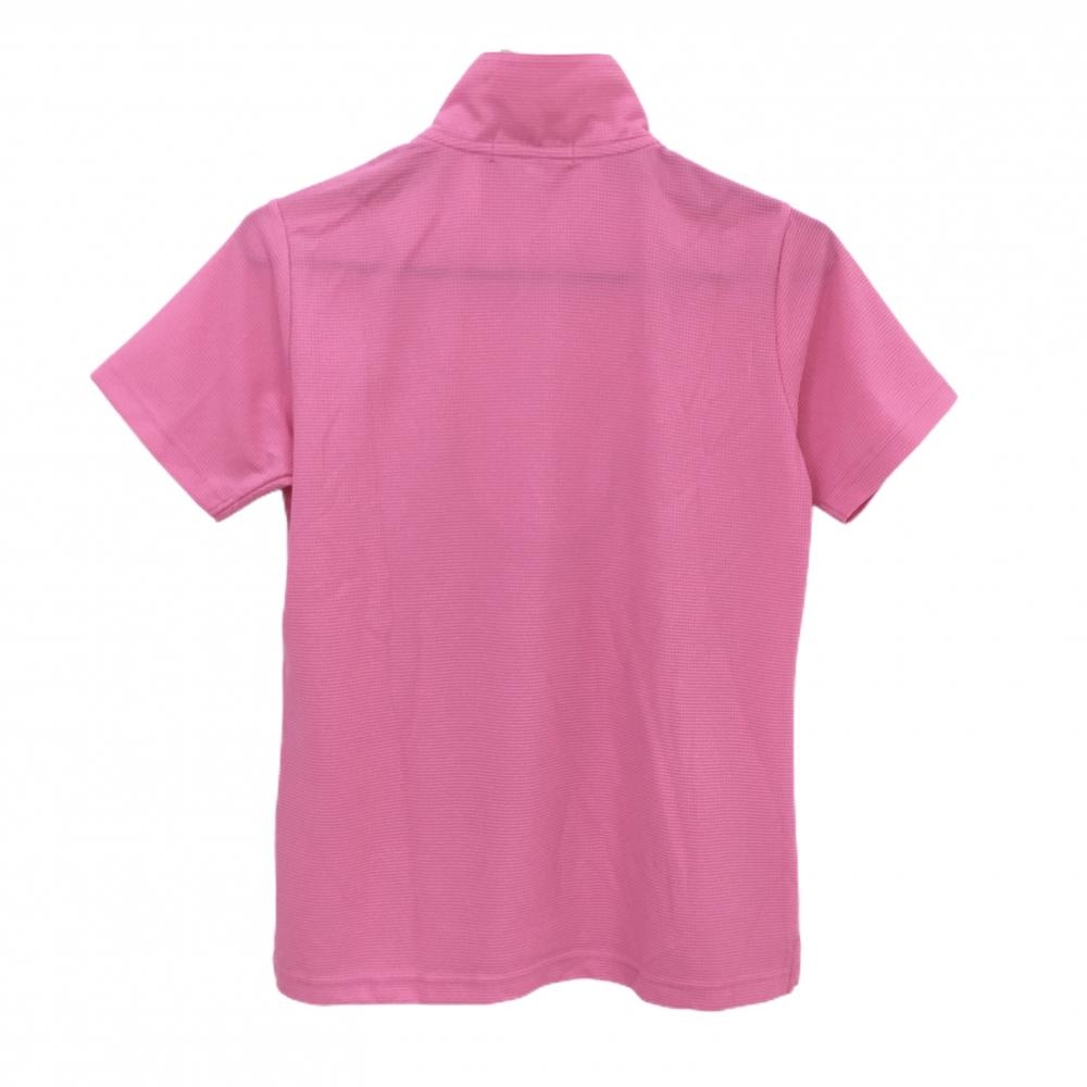 【美品】マリクレールスポール 半袖ハイネックシャツ ピンク 凸凹織 ロゴ刺しゅう ハーフジップ レディース M ゴルフウェア marie claire