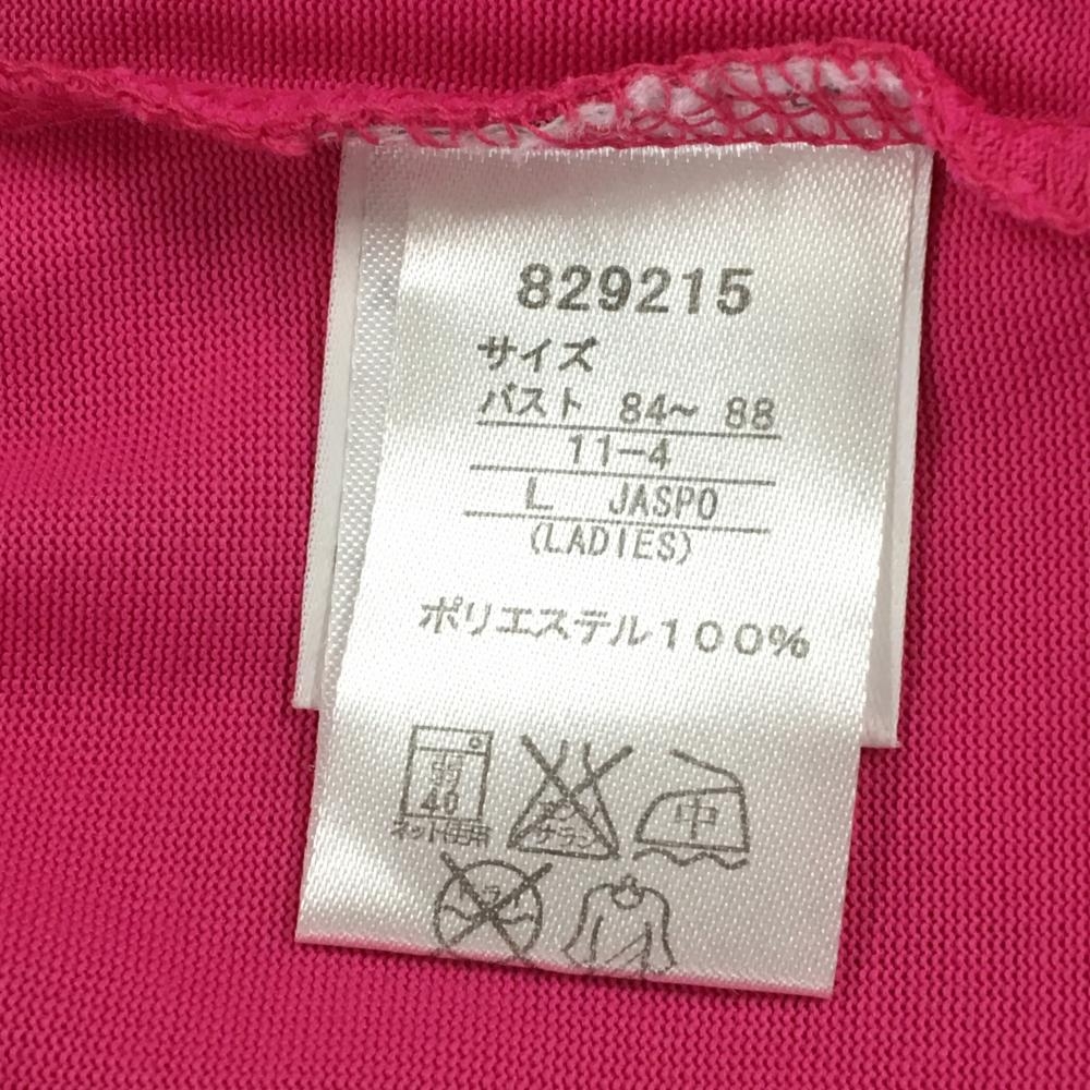【超美品】プーマ 半袖スキッパーシャツ ピンク×グレー 一部ドット ロゴ刺しゅう レディース L ゴルフウェア PUMA
