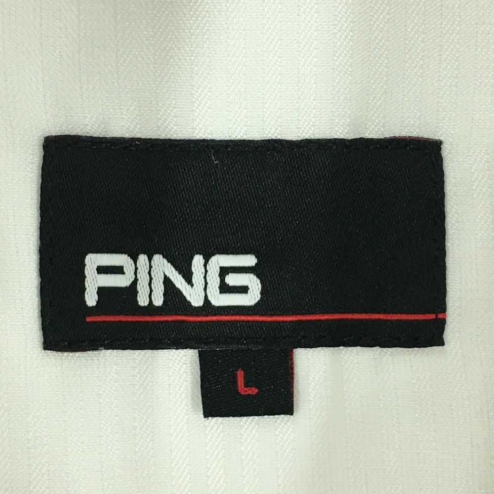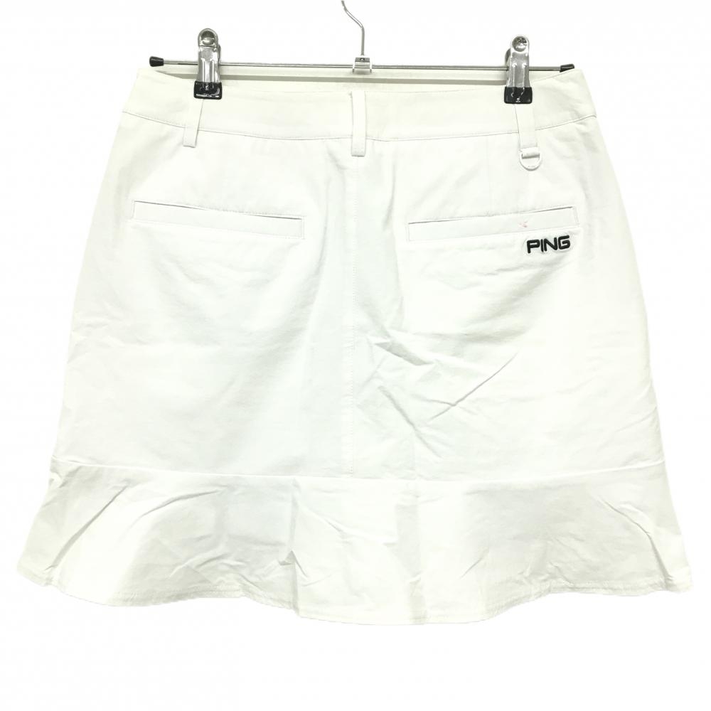 【美品】ピン スカート 白 ロゴ黒 裾フレア ベルト通し・ポケット口刺しゅう有 レディース L ゴルフウェア PING