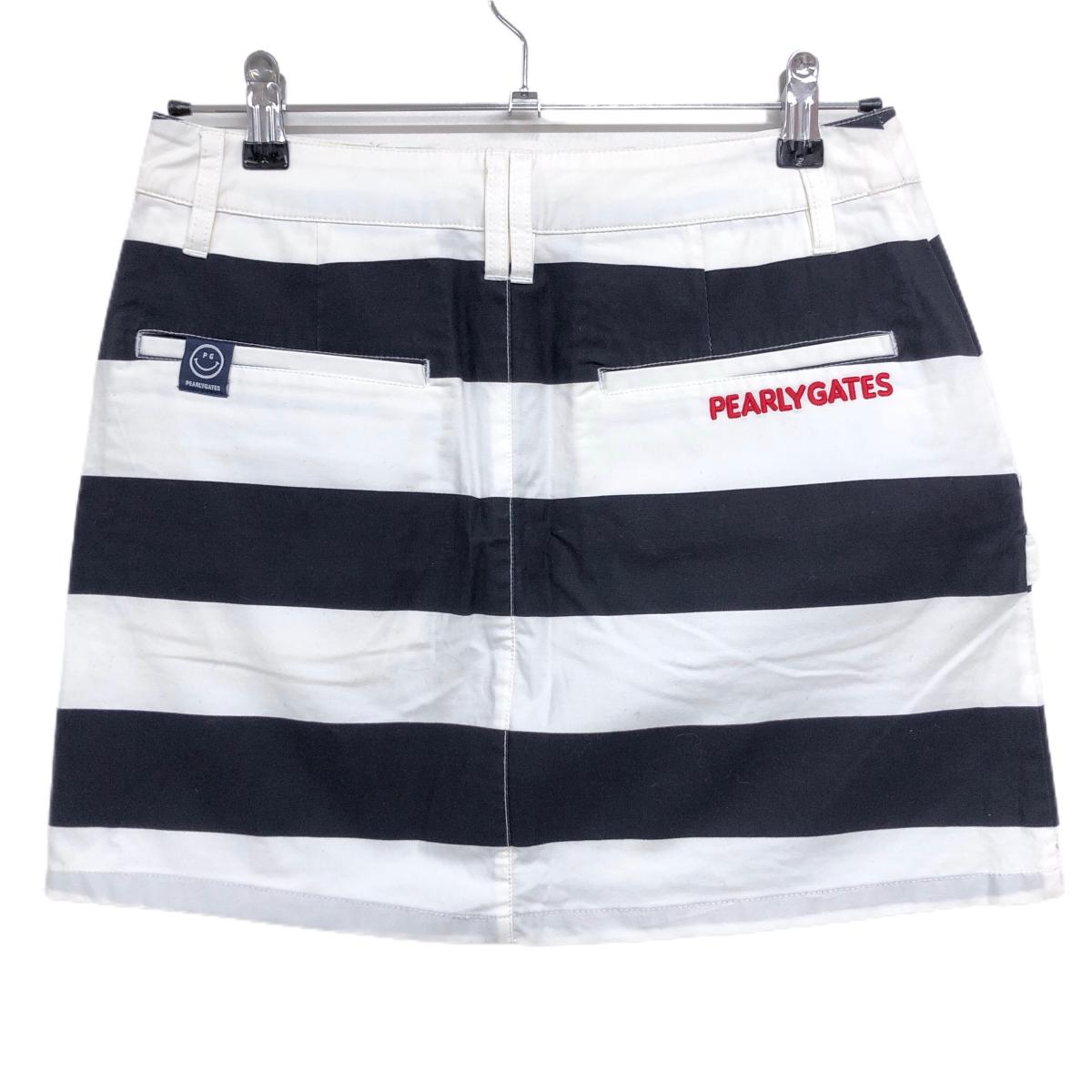 【新品】パーリーゲイツ スカート 白×ネイビー ボーダー 内側ニコちゃん スマイル レディース 1(M) ゴルフウェア PEARLY GATES