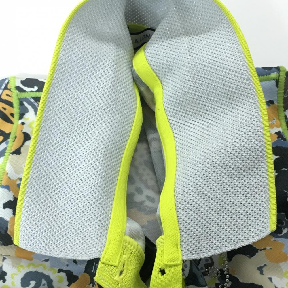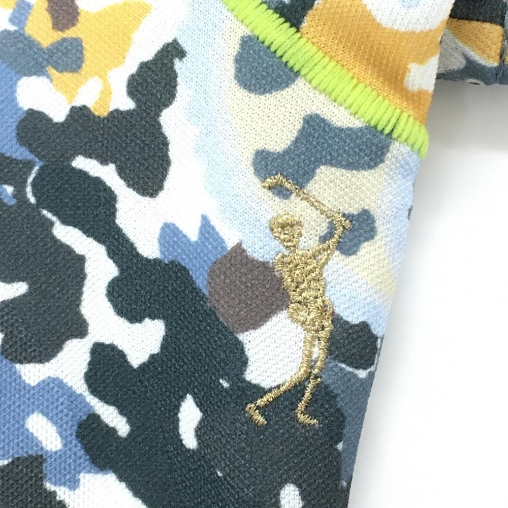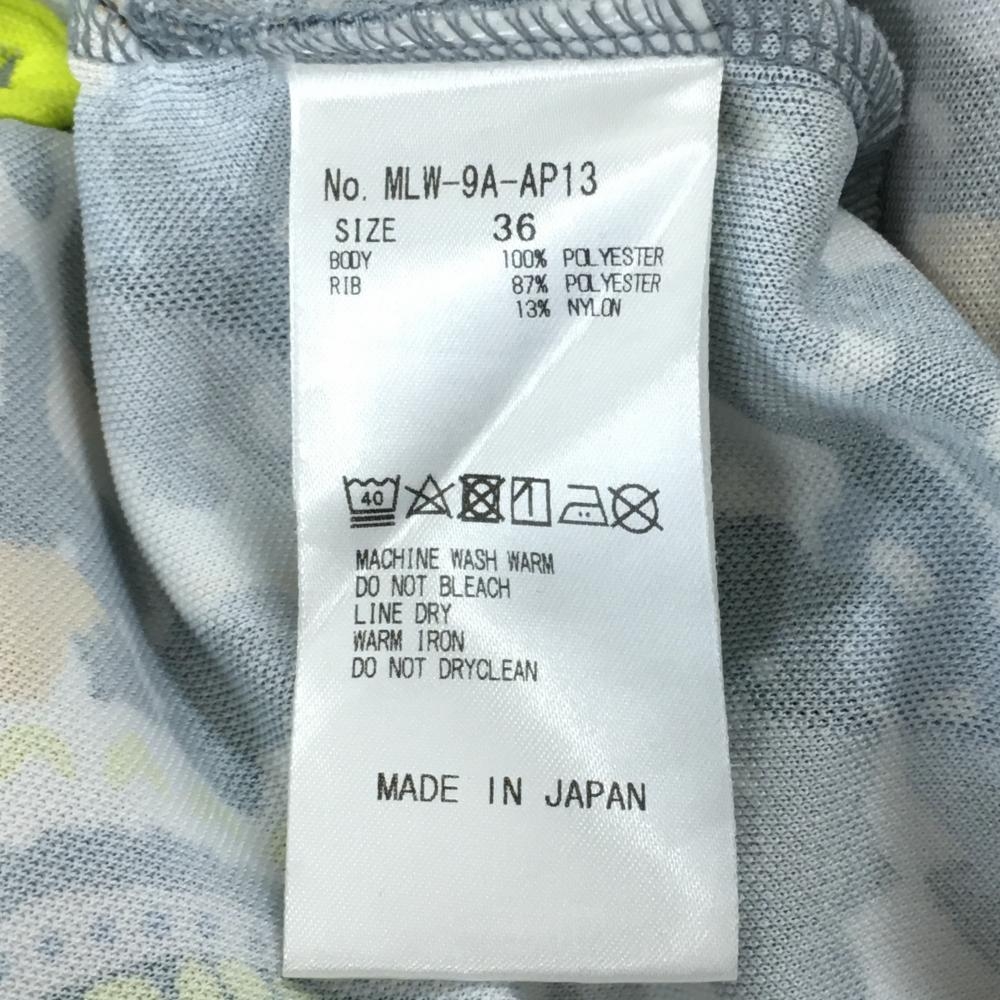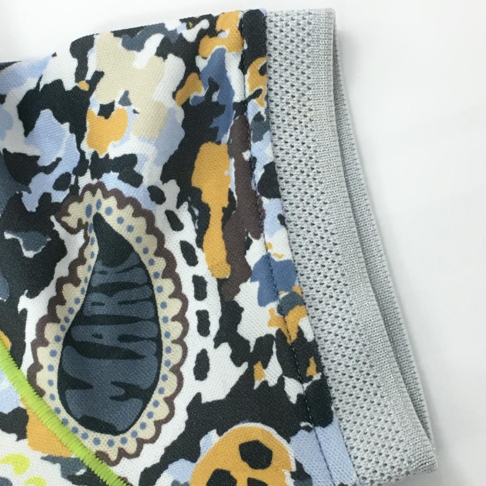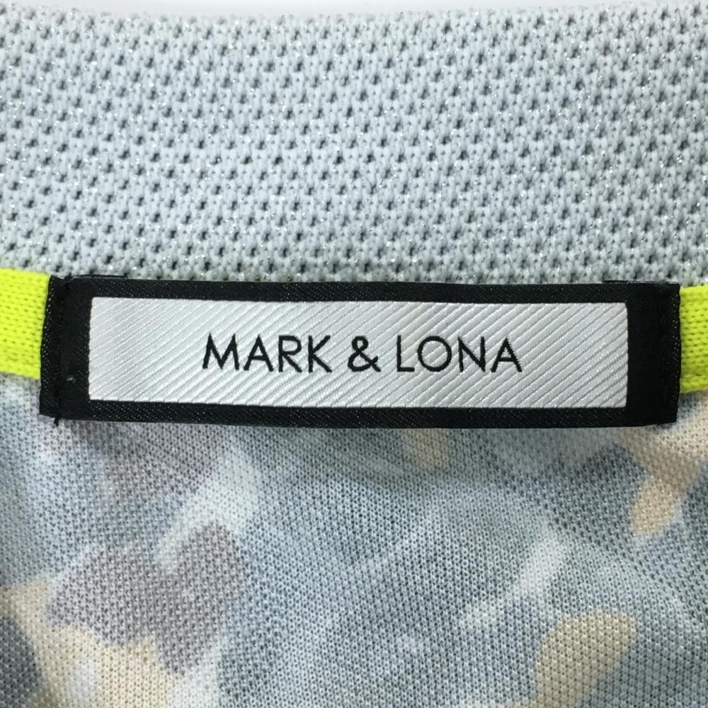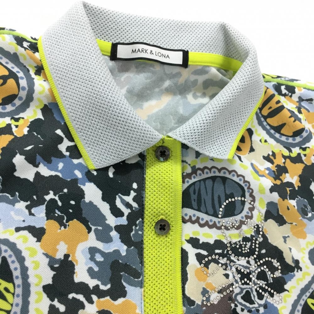 【美品】マークアンドロナ 半袖ポロシャツ グレー×イエロー 総柄 スカル ラインストーン レディース 36(S) ゴルフウェア MARK&LONA
