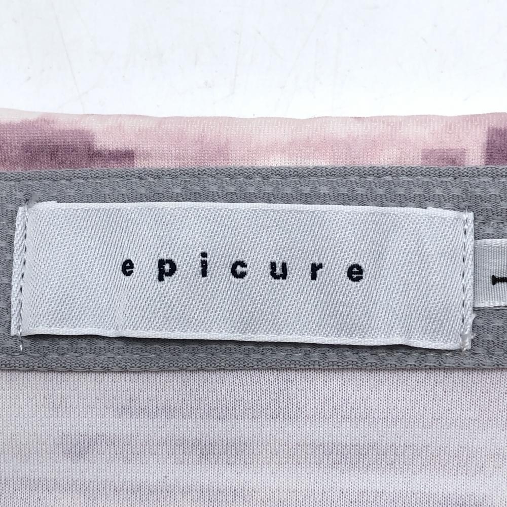 【超美品】エピキュール 半袖ポロシャツ 白×ライトピンク系 ボーダー レディース L ゴルフウェア epicure