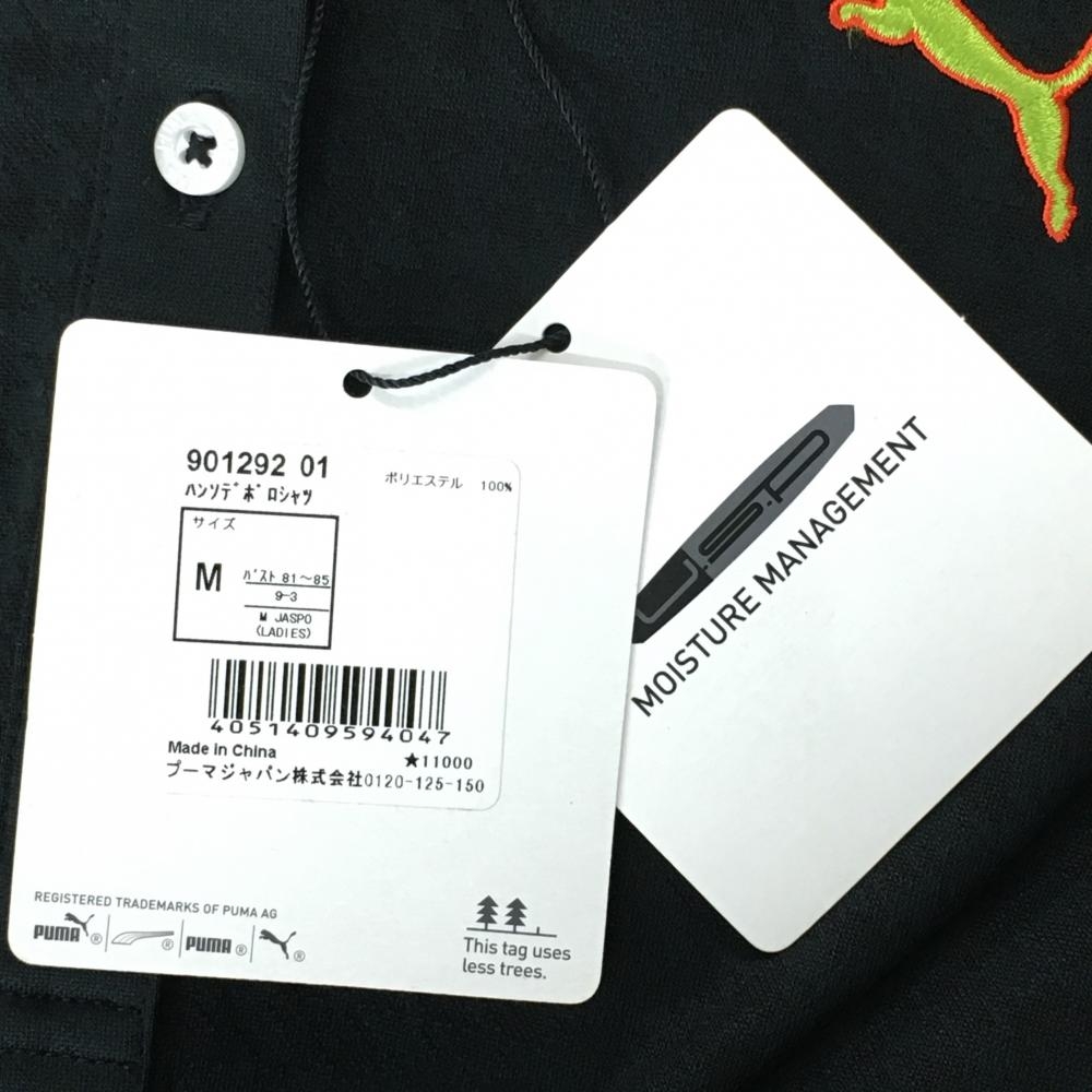 【新品】プーマ 半袖ポロシャツ 黒 千鳥格子地模様 ボタンダウン レディース M ゴルフウェア PUMA