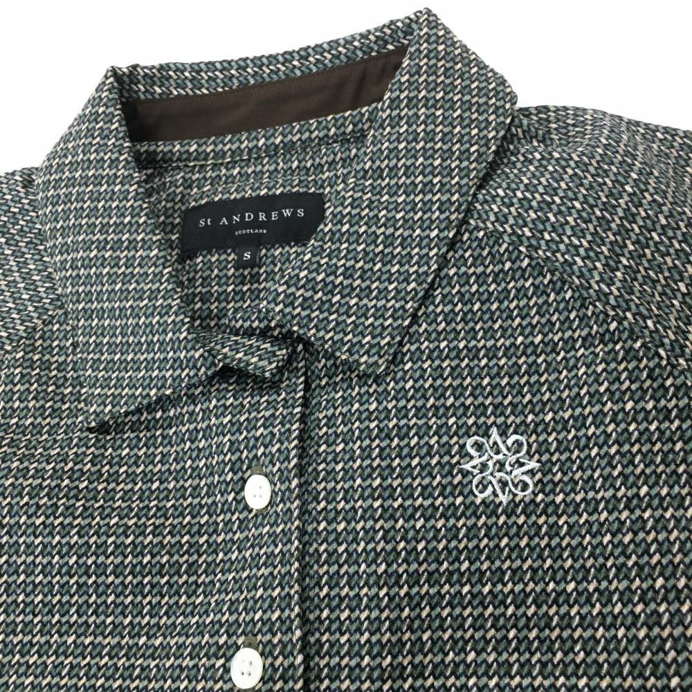 【超美品】セントアンドリュース 半袖ポロシャツ ベージュ×ブラウン 総柄 ロゴ レディース S ゴルフウェア St ANDREWS