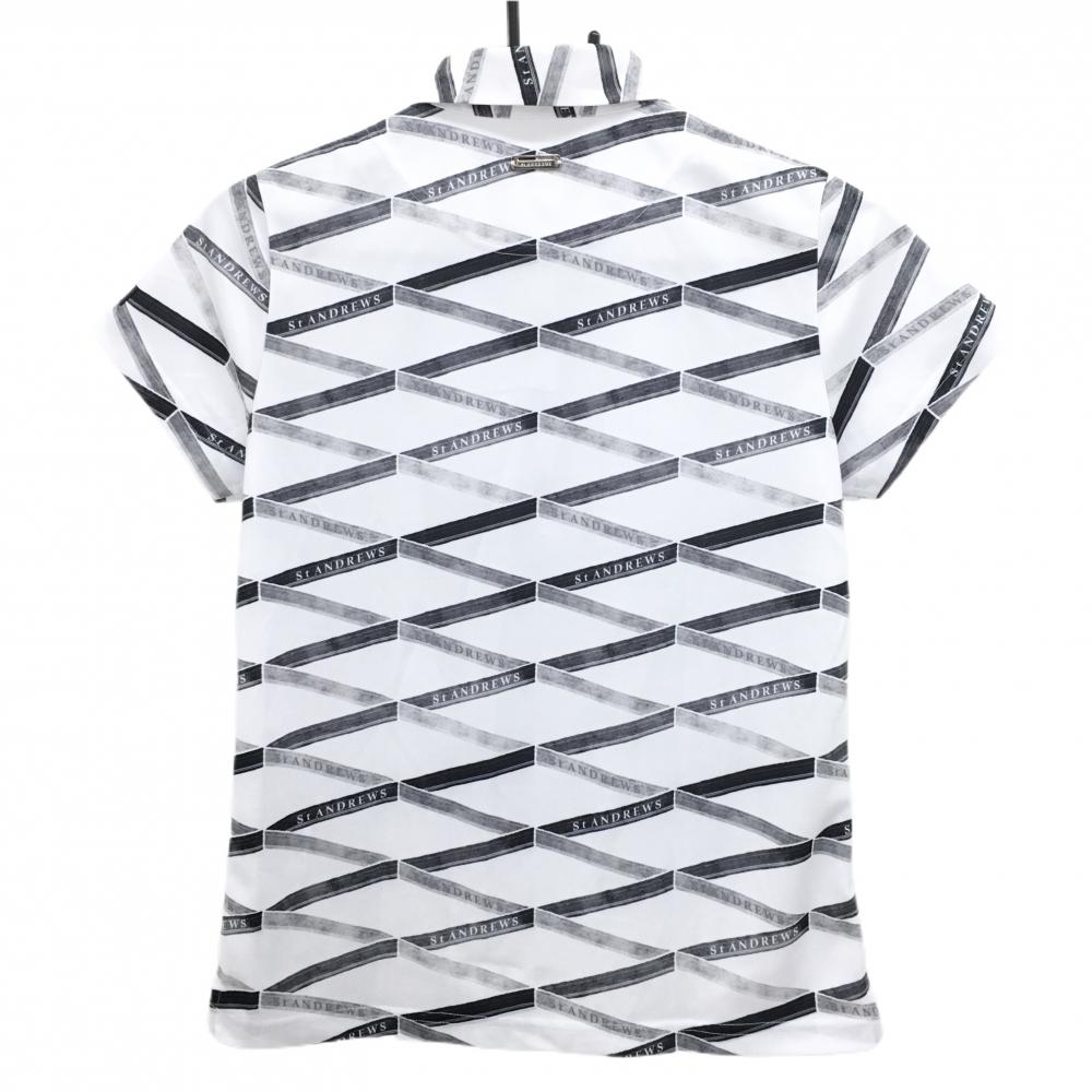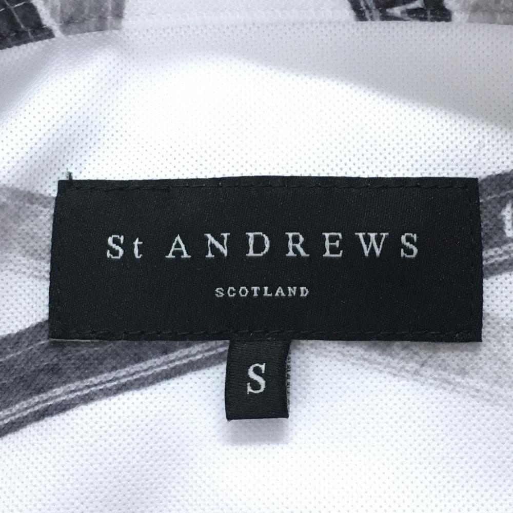 【超美品】セントアンドリュース 半袖ポロシャツ 白×グレー 総柄 ロゴ レディース S ゴルフウェア St ANDREWS