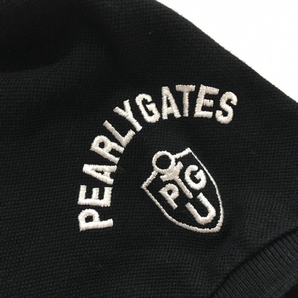 パーリーゲイツ 半袖ポロシャツ 黒×白 フェルトワッペン レディース 0(S) ゴルフウェア PEARLY GATES