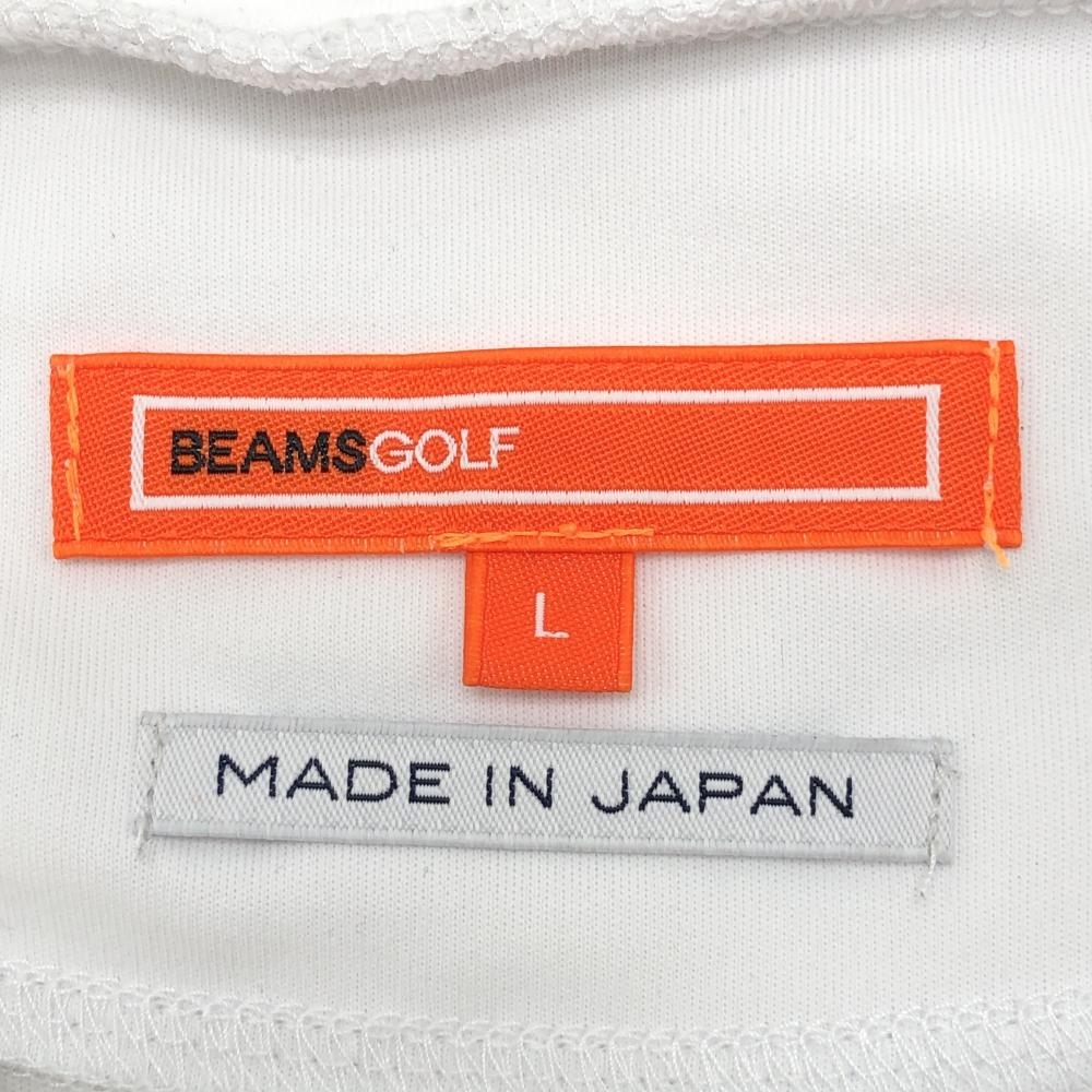 ビームスゴルフ 半袖ハイネックシャツ 白×ネイビー×レッド ロゴプリント メンズ L ゴルフウェア BEAMS GOLF