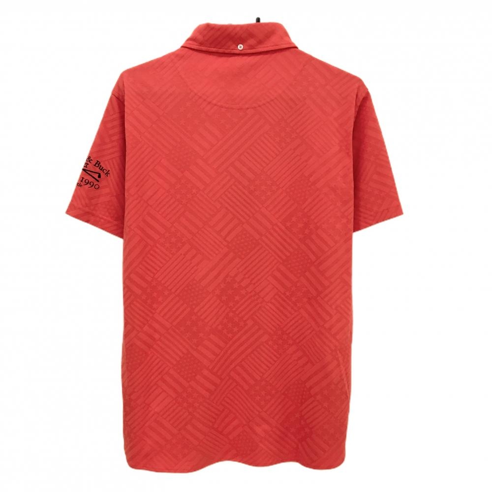 【美品】カッターアンドバック 半袖ポロシャツ レッド 星柄 斜めストライプ ボタンダウン メンズ LL ゴルフウェア CUTTER&BUCK