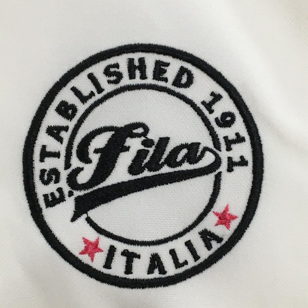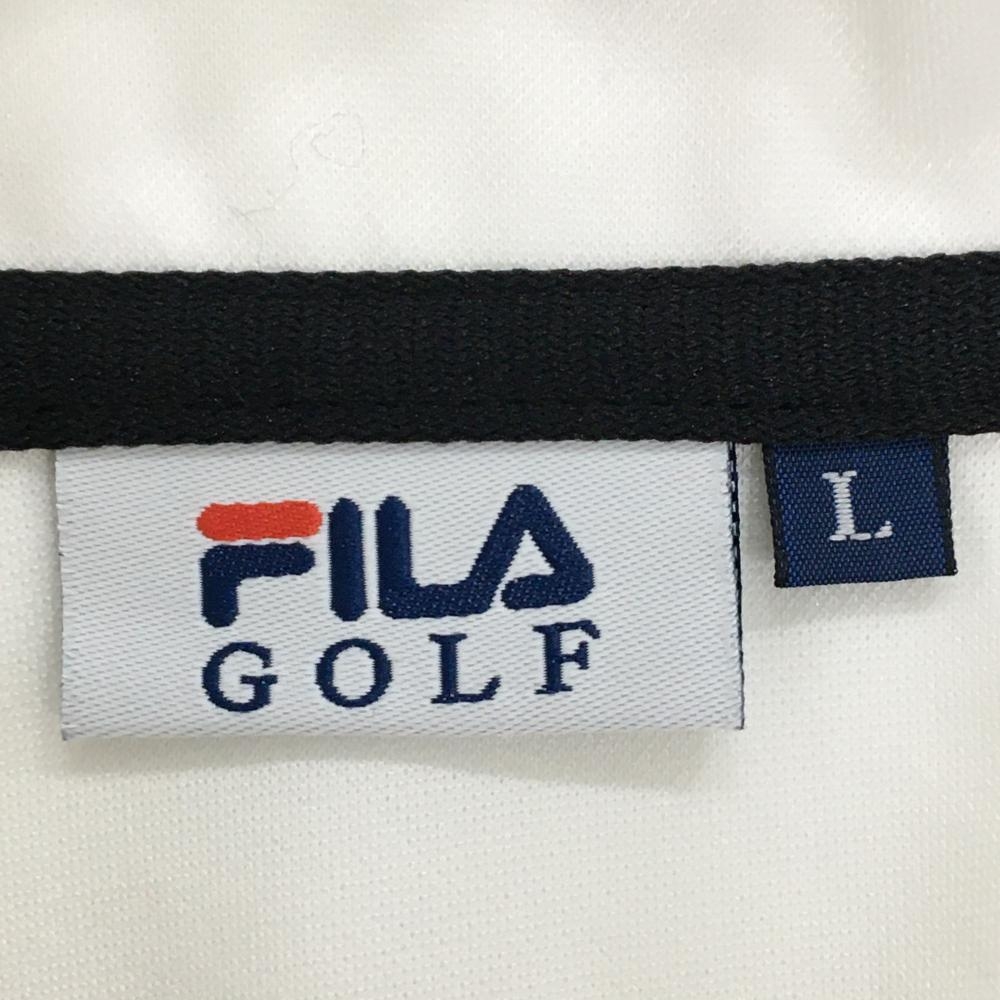 【超美品】フィラゴルフ 半袖ハイネックシャツ 白×黒 ロゴ刺しゅう ハーフジップ レディース L ゴルフウェア FILA GOLF