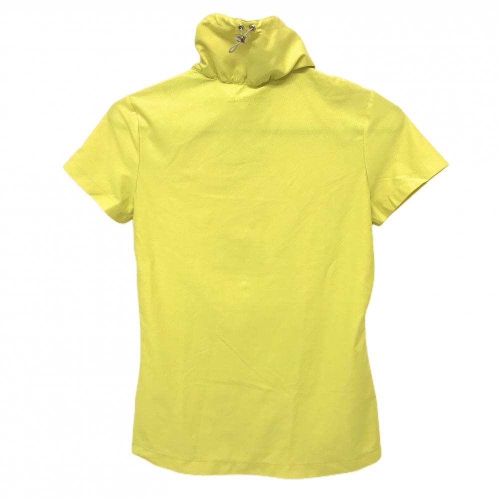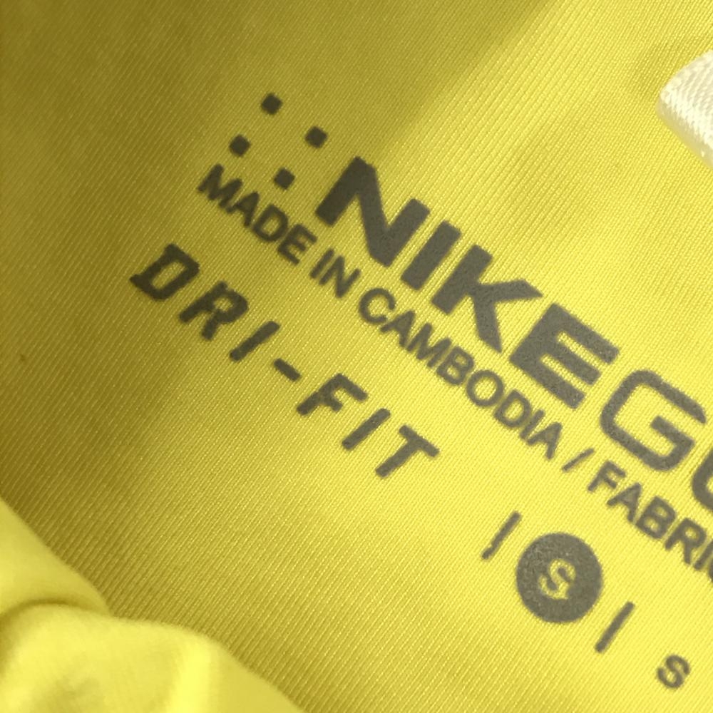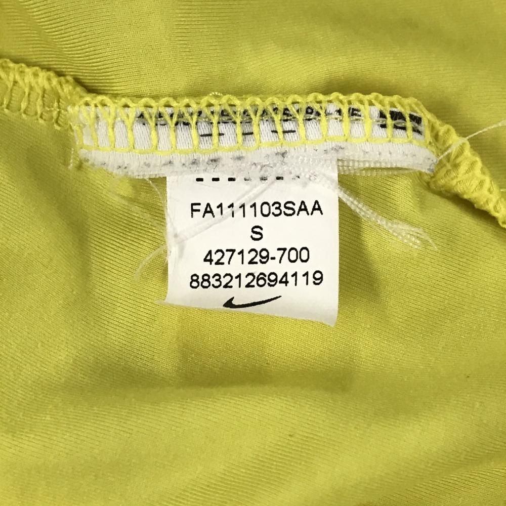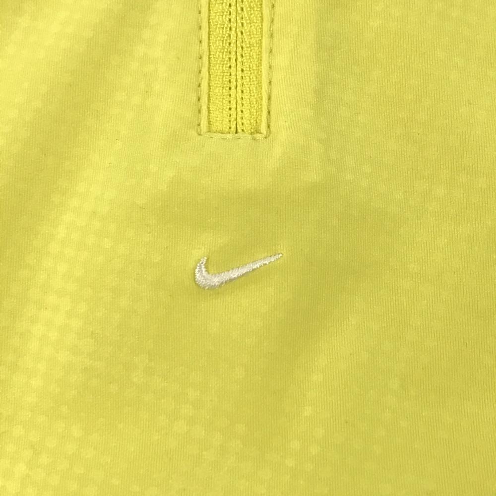 【美品】ナイキゴルフ 半袖ハイネックシャツ イエロー 地模様 ハーフジップ ネックドローコード レディース S ゴルフウェア NIKE