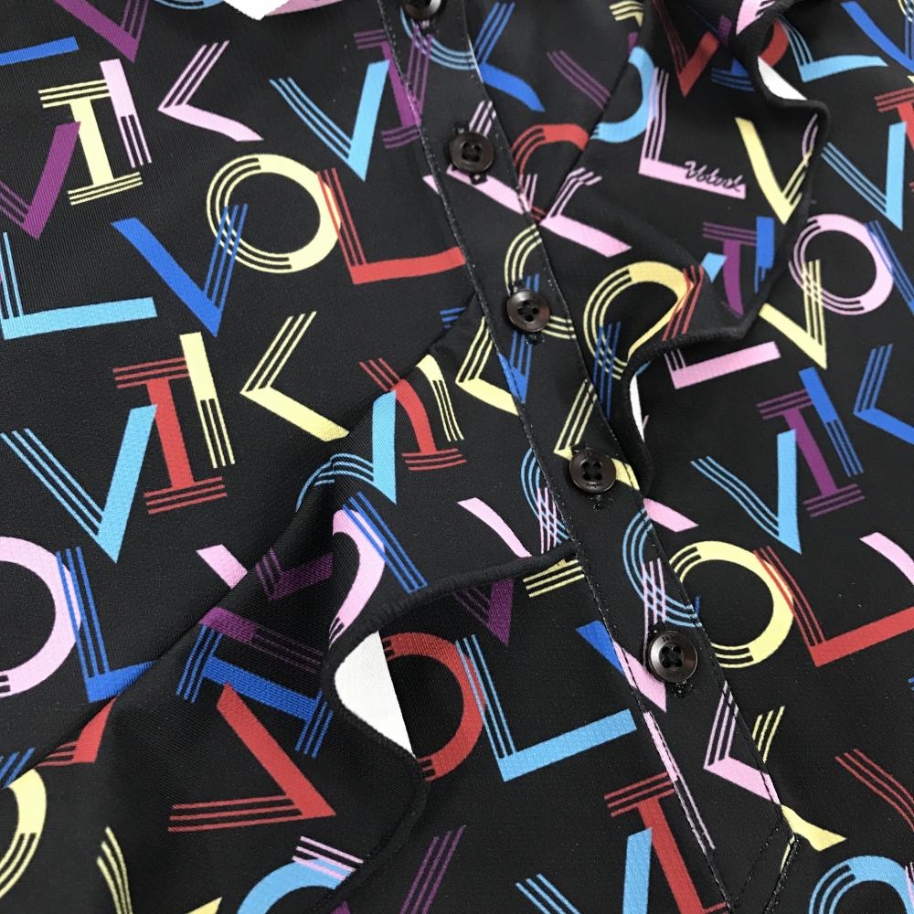 【超美品】ボルビック 半袖ポロシャツ 黒×マルチカラー ロゴ総柄 韓国モデル 一部フリル レディース 85 ゴルフウェア volvik