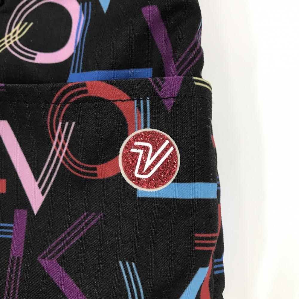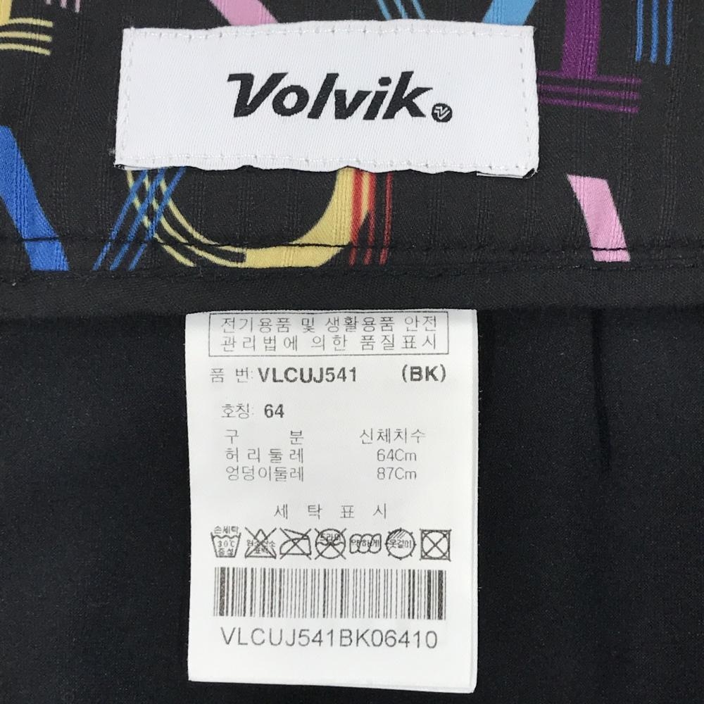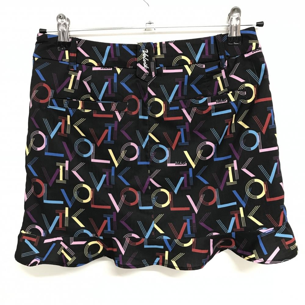 【美品】ボルビック スカート 黒×マルチカラー ロゴ総柄 韓国モデル レディース 64 ゴルフウェア ウエスト下糸引き複数 volvik