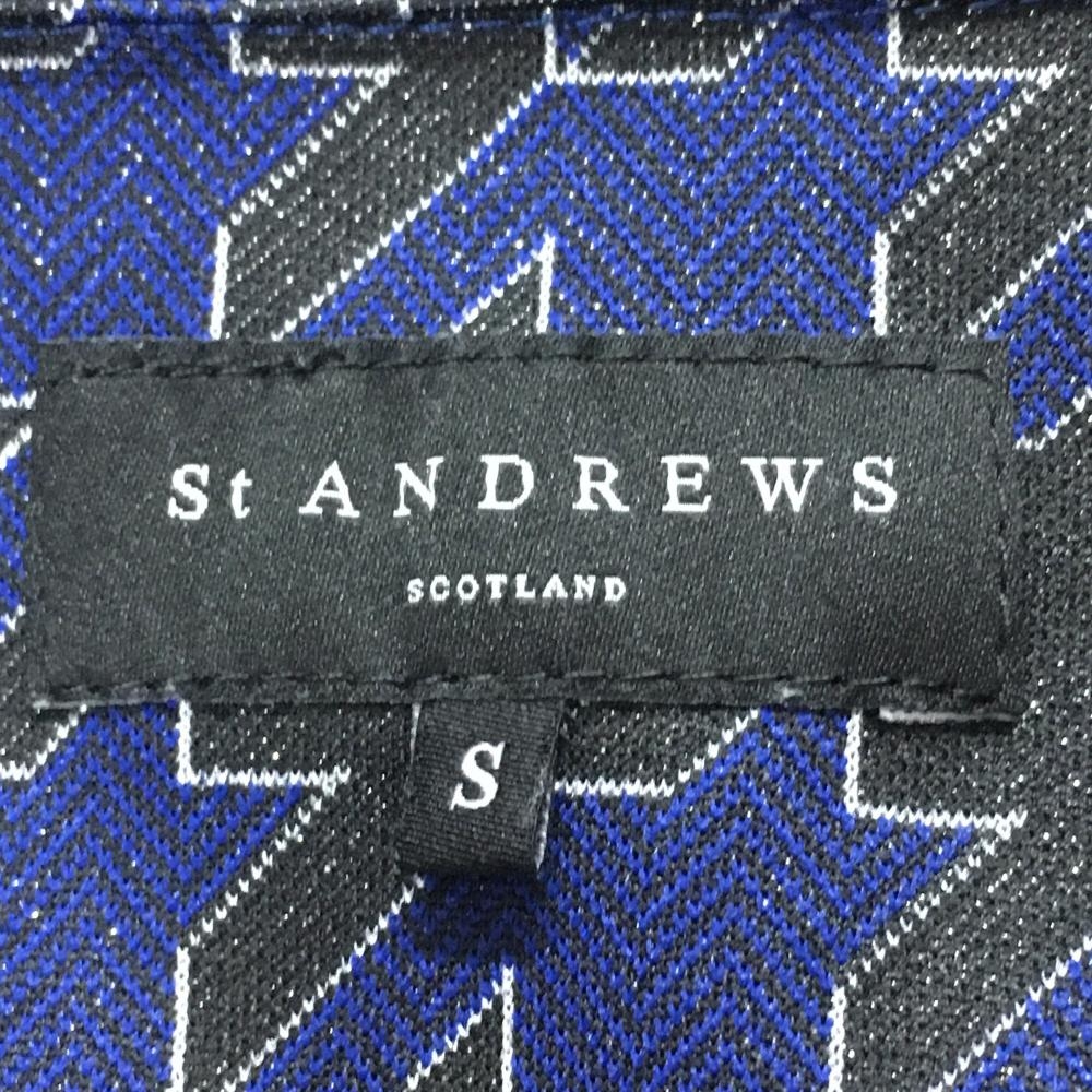 【超美品】セントアンドリュース 半袖ポロシャツ ネイビー×黒 千鳥格子 シルバーラメ レディース S ゴルフウェア St ANDREWS