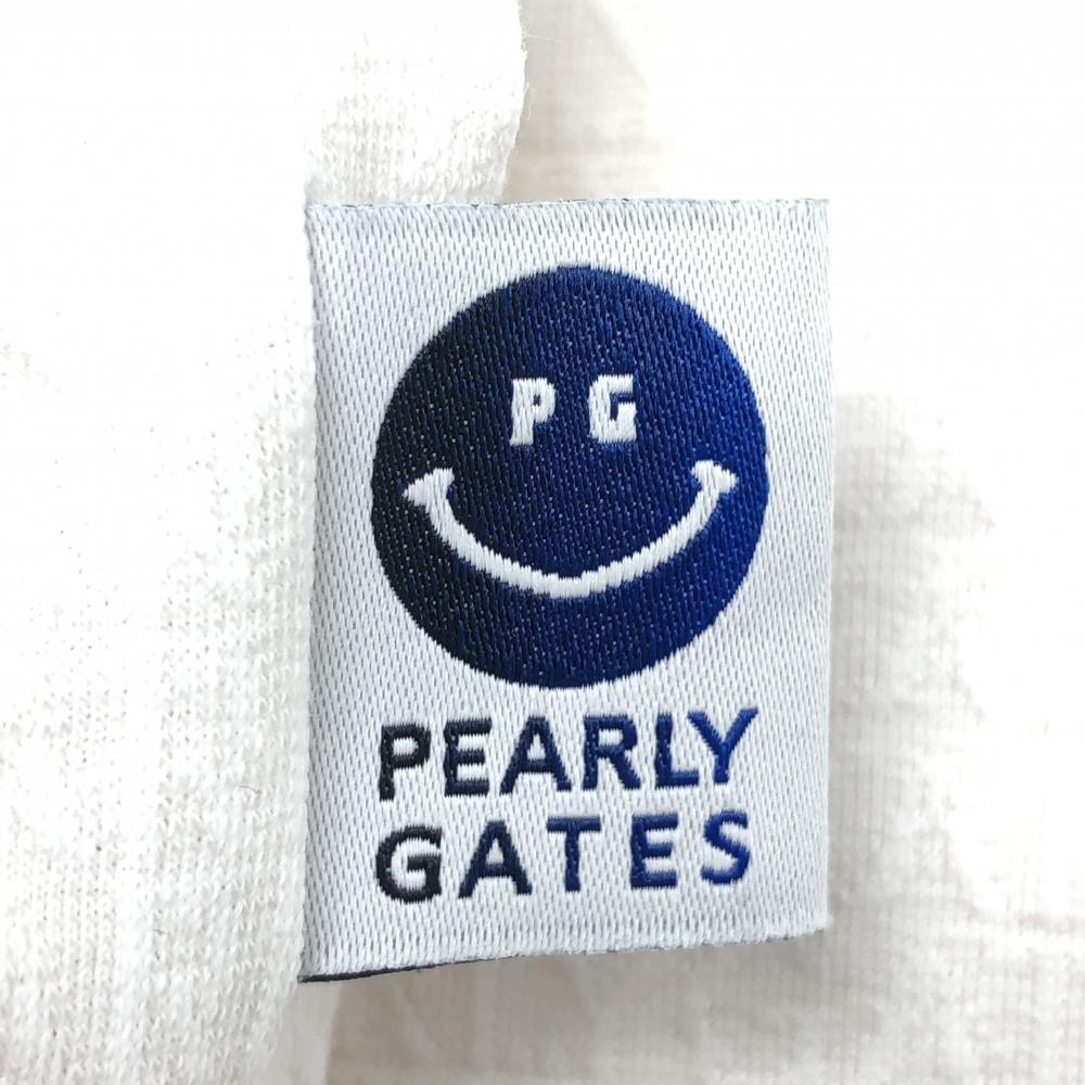 【超美品】パーリーゲイツ 半袖ハイネックシャツ 白 ロゴ総柄地模様 ストレッチ レディース 00(XS) ゴルフウェア PEARLY GATES