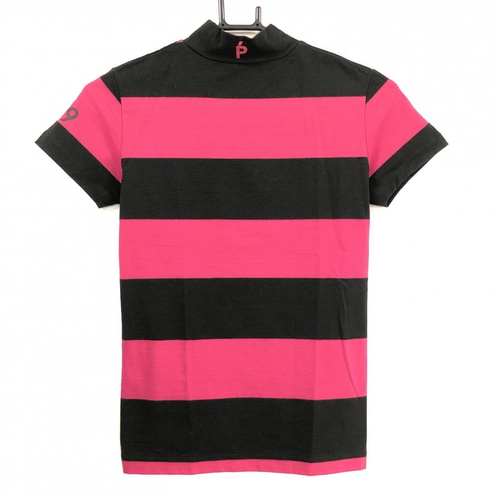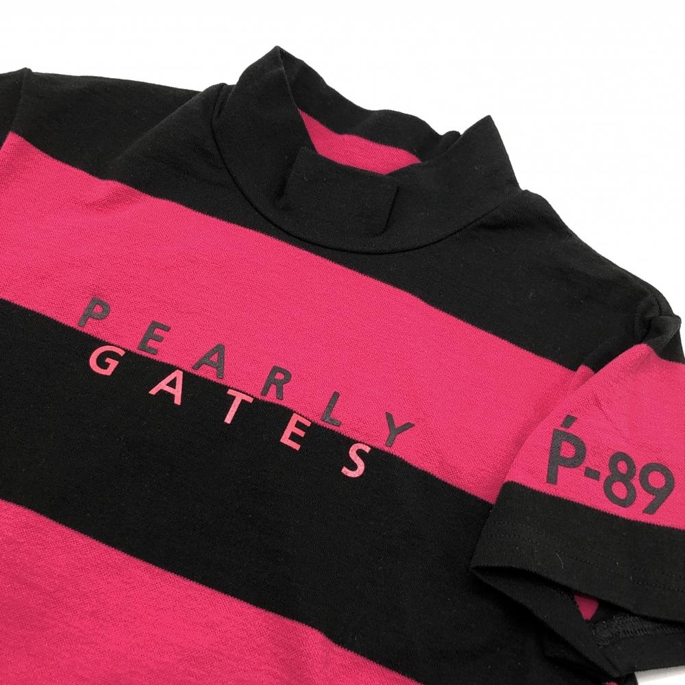 【超美品】パーリーゲイツ 半袖ハイネックシャツ 黒×ピンク ボーダー ストレッチ レディース 0(S) ゴルフウェア PEARLY GATES