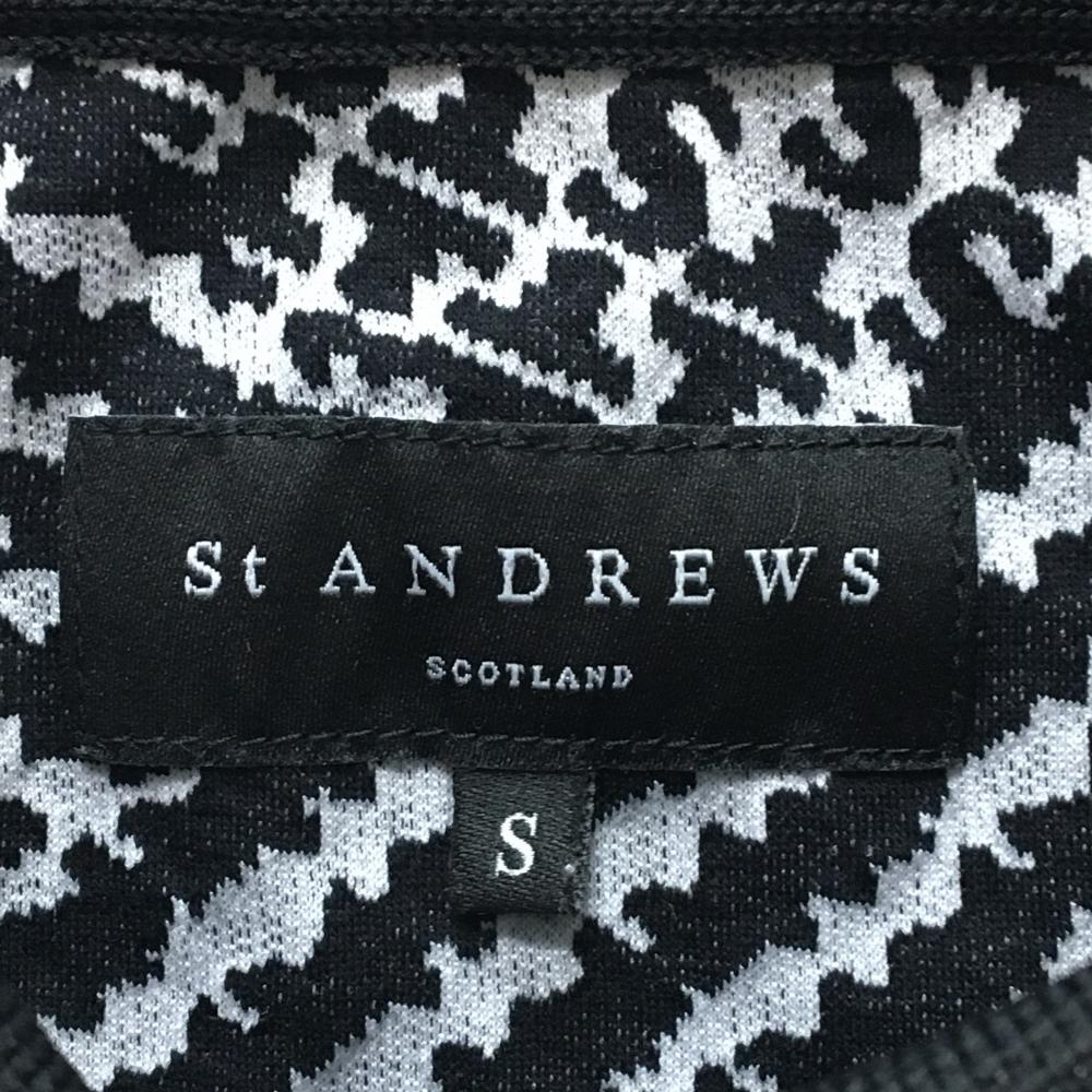 【美品】セントアンドリュース 半袖ポロシャツ 白×黒 総柄 ロゴ刺しゅう レディース S ゴルフウェア St ANDREWS