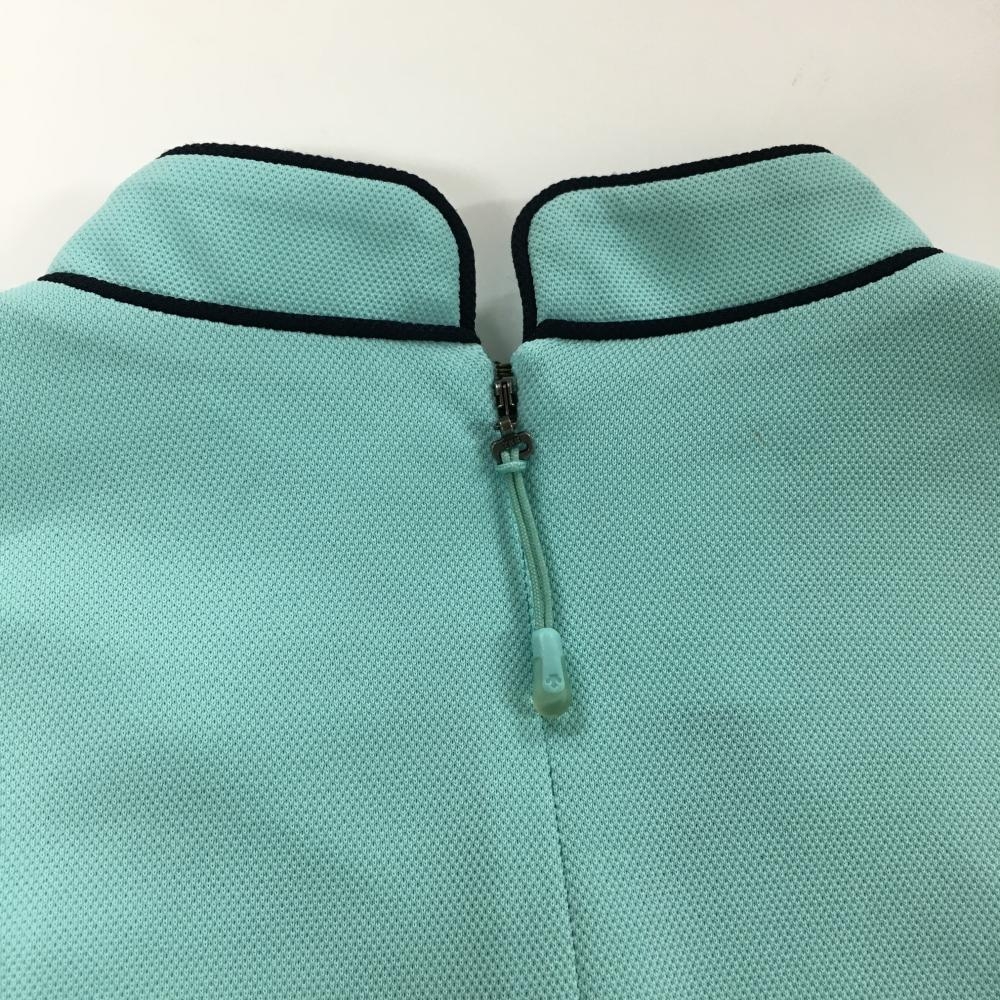 【超美品】デサントゴルフ 半袖スキッパーワンピース ライトブルー×黒 裾プリーツ 韓国モデル レディース S ゴルフウェア DESCENTE
