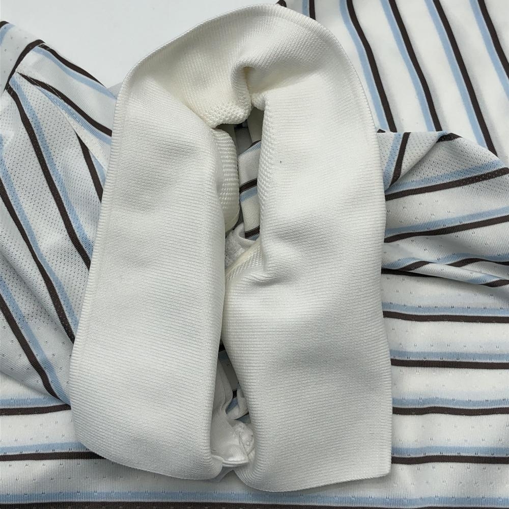 【美品】ナイキ 半袖ポロシャツ 白×ブラウン×ライトブルー ボーダー メンズ XXL ゴルフウェア NIKE