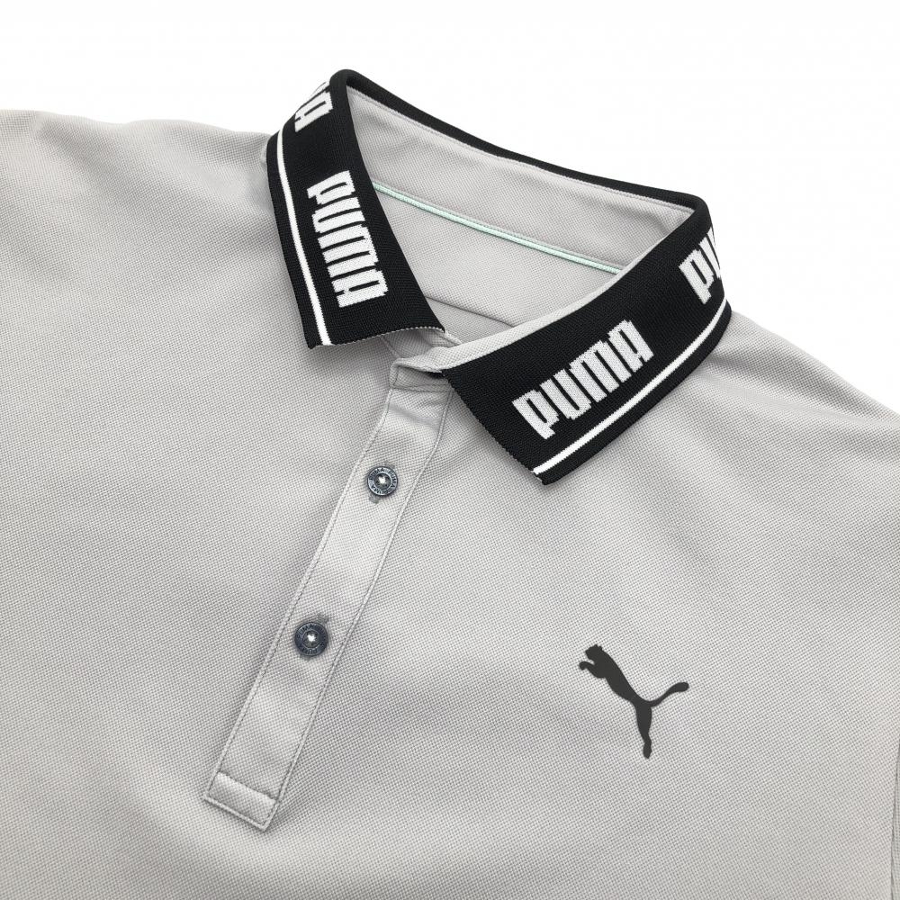 【美品】プーマ 半袖ポロシャツ グレー×黒 襟ロゴ DRYCLL メンズ XXL ゴルフウェア 大きいサイズ PUMA