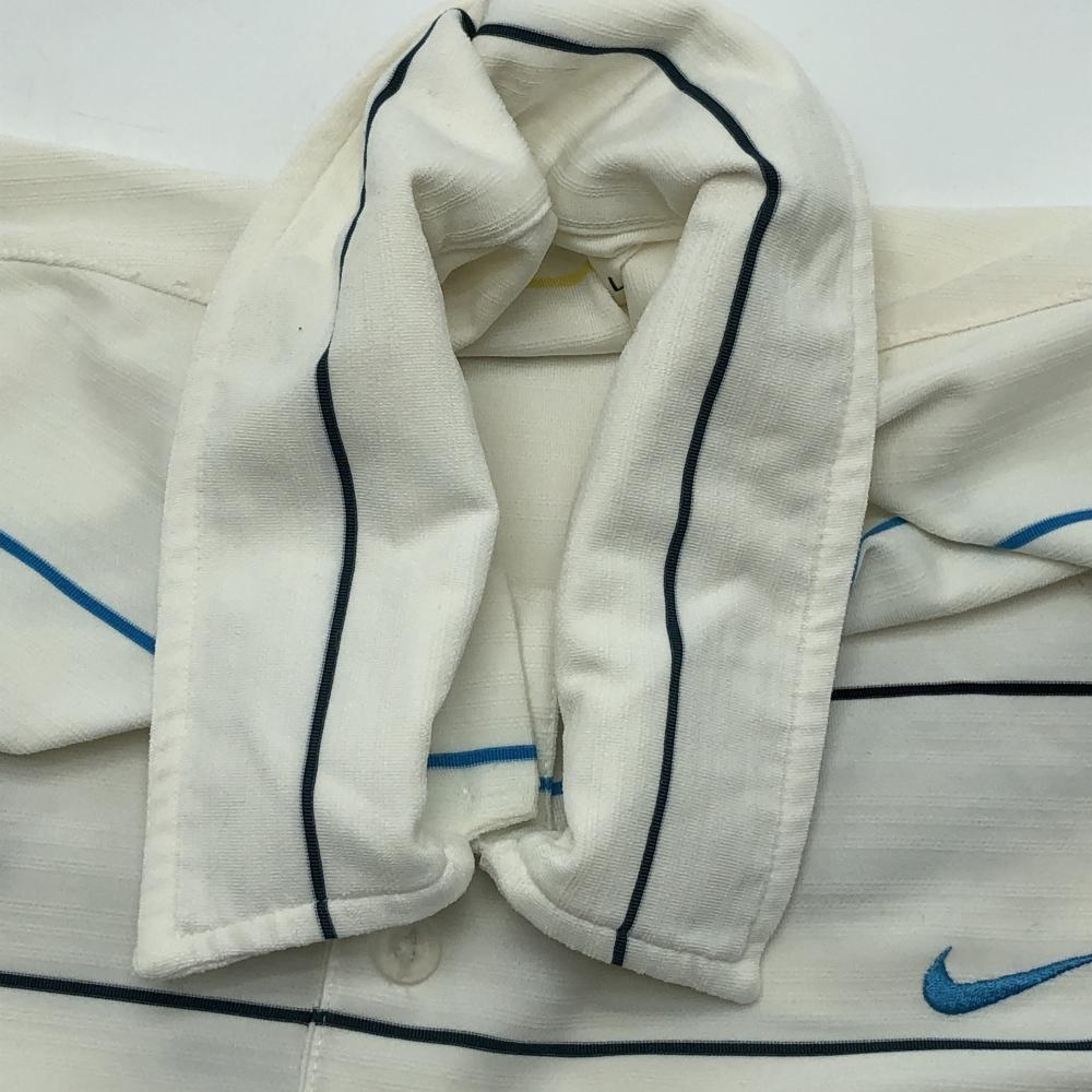 ナイキ 半袖ポロシャツ 白×ブルー×イエロー ボーダー メンズ XL TG EG ゴルフウェア NIKE