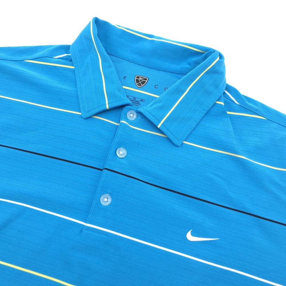 【美品】ナイキゴルフ 半袖ポロシャツ ブルー×イエロー×白 ボーダー メンズ XL TG EG ゴルフウェア NIKE