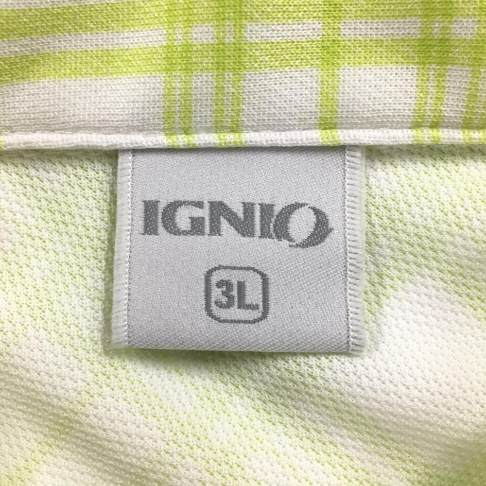 【超美品】イグニオ 半袖ポロシャツ 白×ライトグリーン チェック ボタンダウン iCOOL メンズ 3L ゴルフウェア 大きいサイズ IGNIO