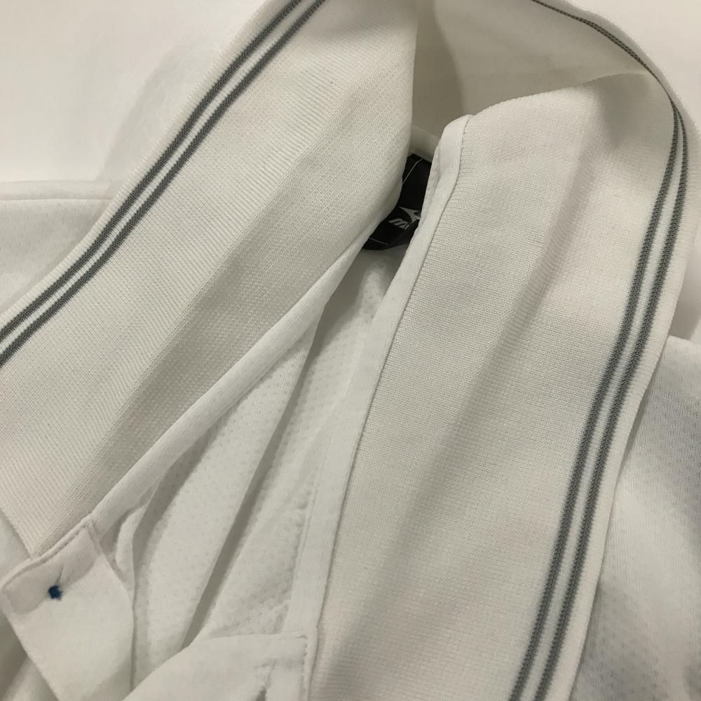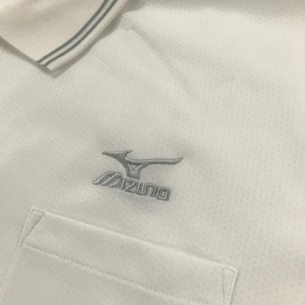 【美品】ミズノ 半袖ポロシャツ 白×グレー ロゴ刺しゅう 胸ポケット メンズ 3L ゴルフウェア MIZUNO