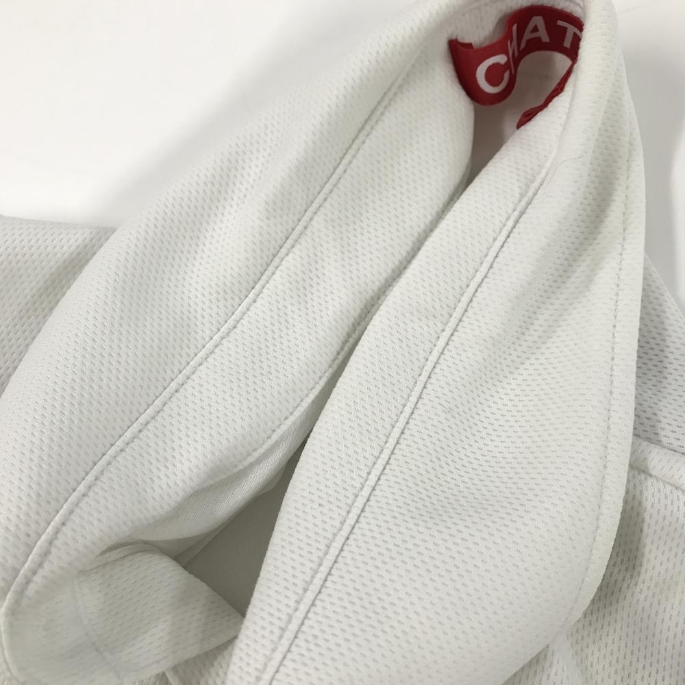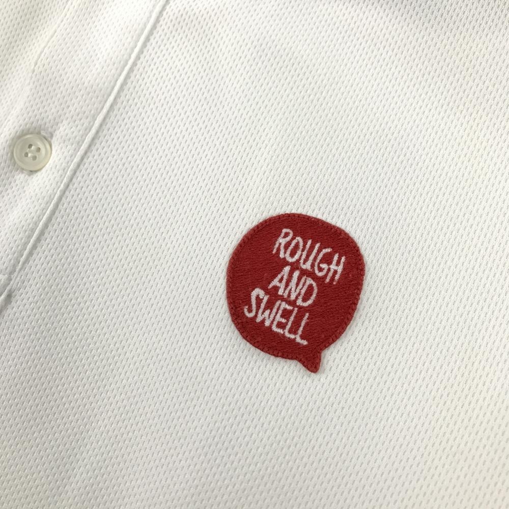 チャットバイラフアンドスウェル 半袖ポロシャツ 白×レッド CHAT ボタンダウン胸ロゴ メンズ M ゴルフウェア rough&swell