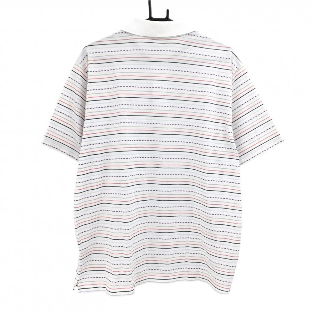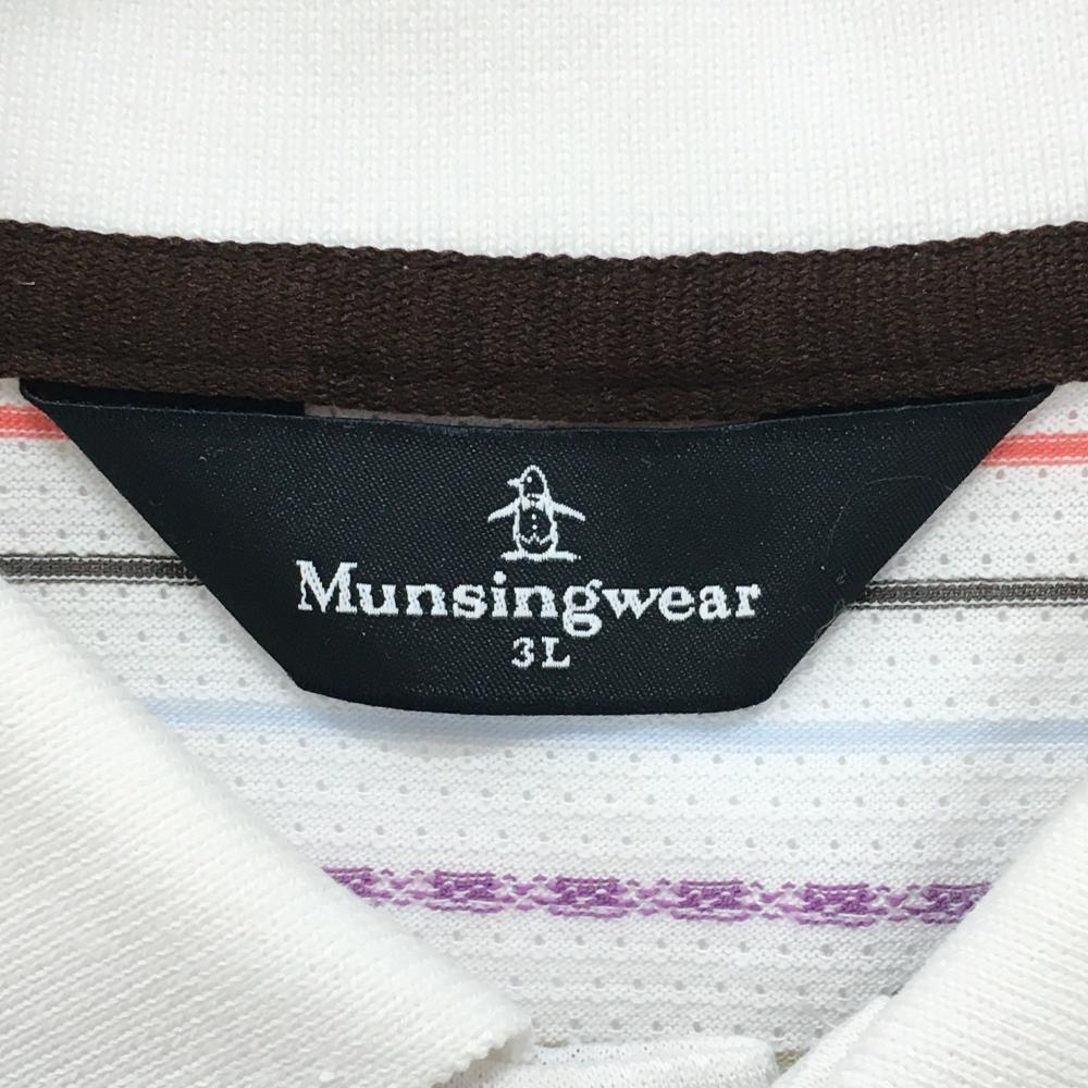 マンシングウェア 半袖ポロシャツ 白×マルチカラー ボーダー メンズ 3L ゴルフウェア 大きいサイズ Munsingwear