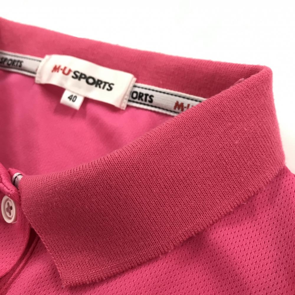 【美品】MUスポーツ 半袖ポロシャツ ピンク ドッグ刺しゅう レディース 40(M) ゴルフウェア M・U SPORTS