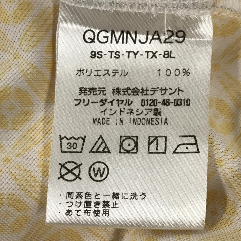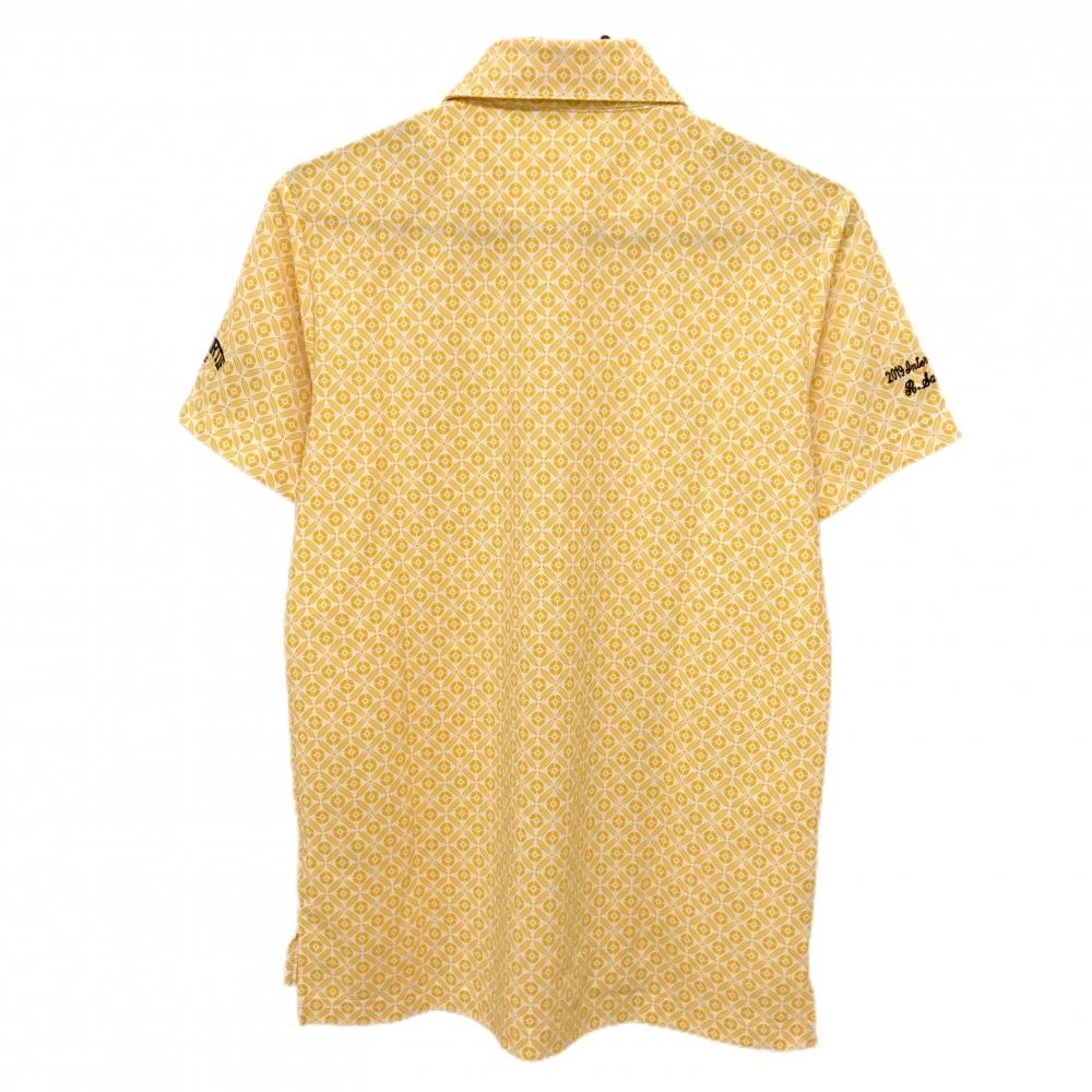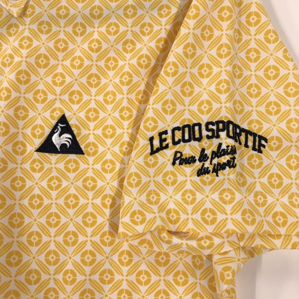 【超美品】ルコックゴルフ 半袖ポロシャツ 白×イエロー 総柄 ロゴ刺しゅう ボタンダウン メンズ M ゴルフウェア le coq sportif