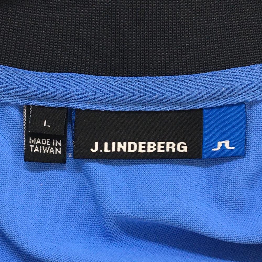 【超美品】ジェイリンドバーグ 半袖シャツ ライトブルー×白 背面ロゴ メンズ L ゴルフウェア J.LINDEBERG
