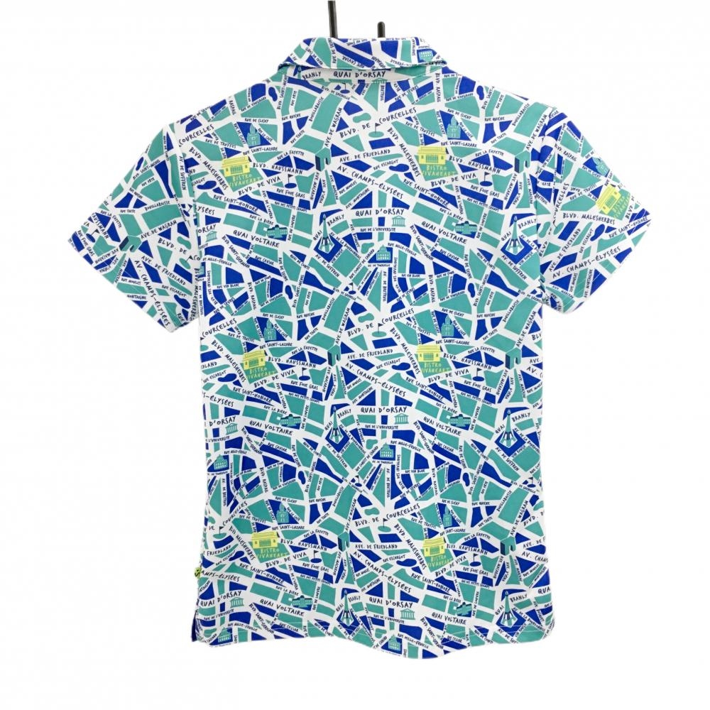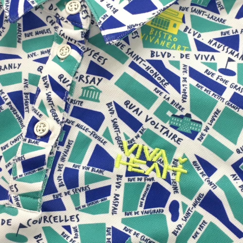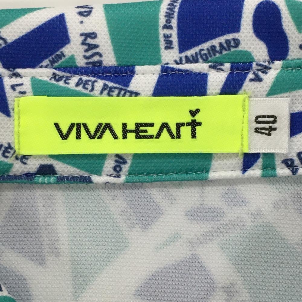 【超美品】ビバハート 半袖ポロシャツ ミントグリーン×ブルー×白 総柄 レディース 40(M) ゴルフウェア VIVA HEART