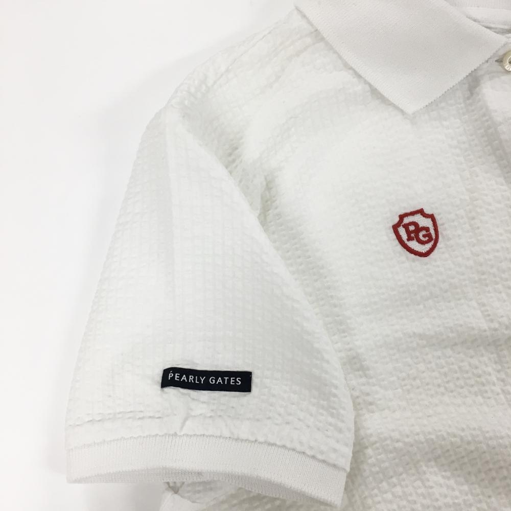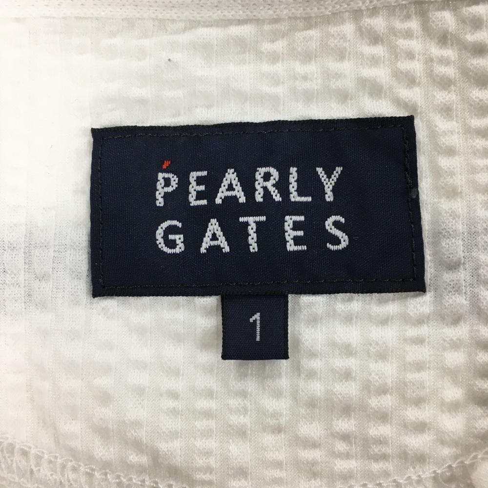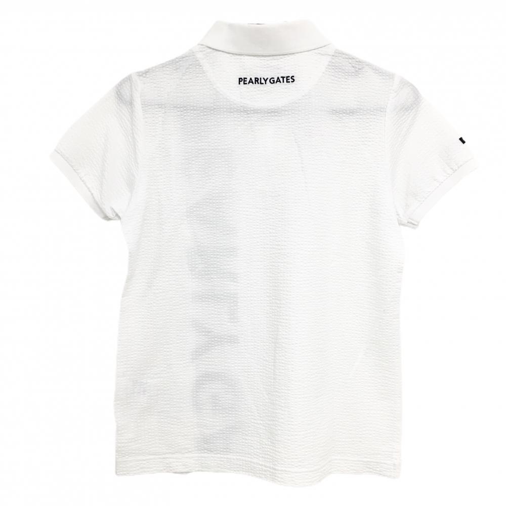 【美品】パーリーゲイツ 半袖ポロシャツ 白×ダークネイビー サッカー生地 ビッグロゴ レディース 1(M) ゴルフウェア PEARLY GATES