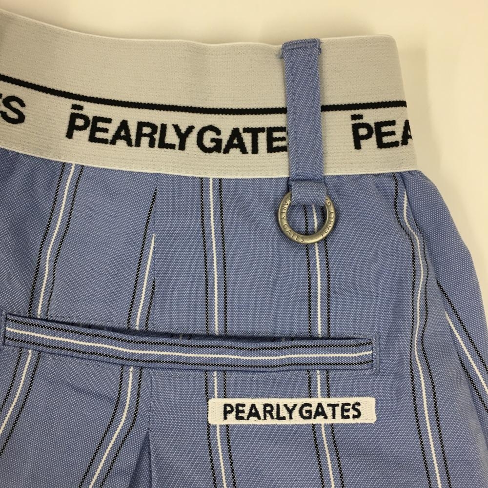 【超美品】パーリーゲイツ スカート ライトブルー×白 ストライプ レディース 0(S) ゴルフウェア 2025年モデル PEARLY GATES