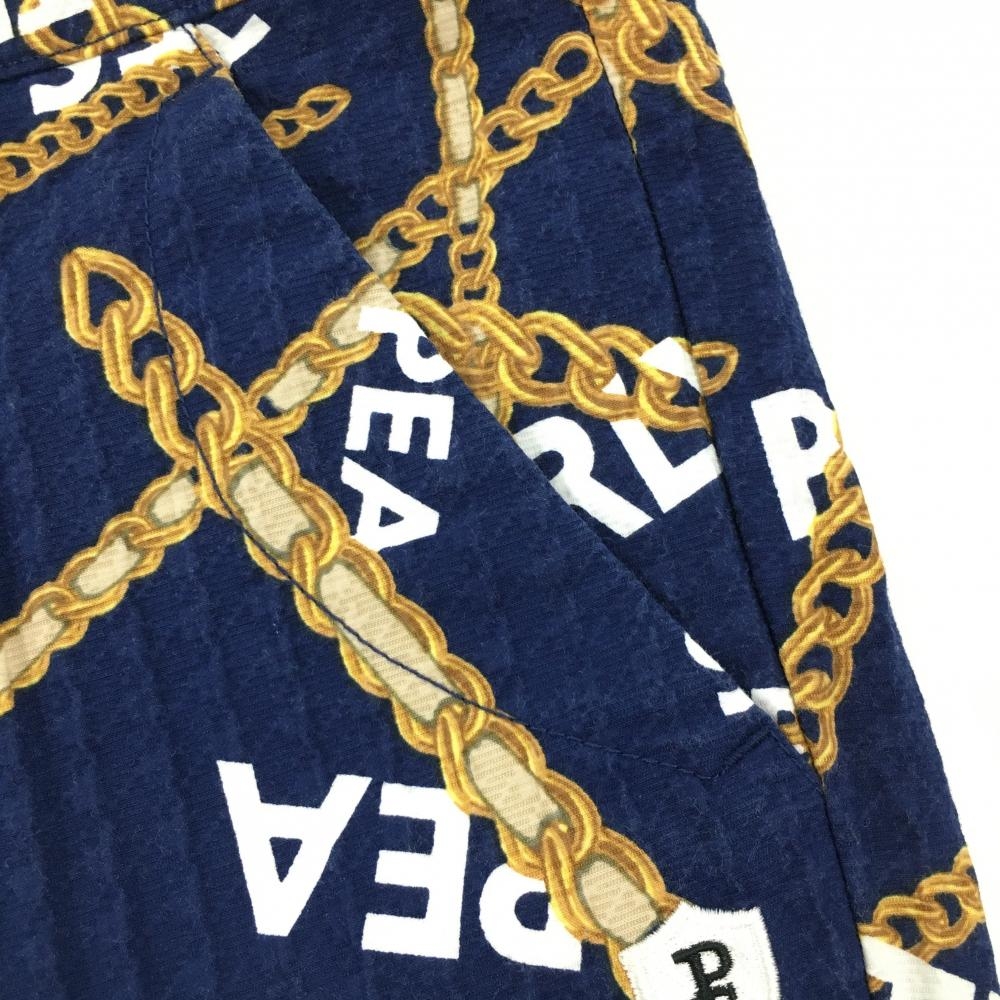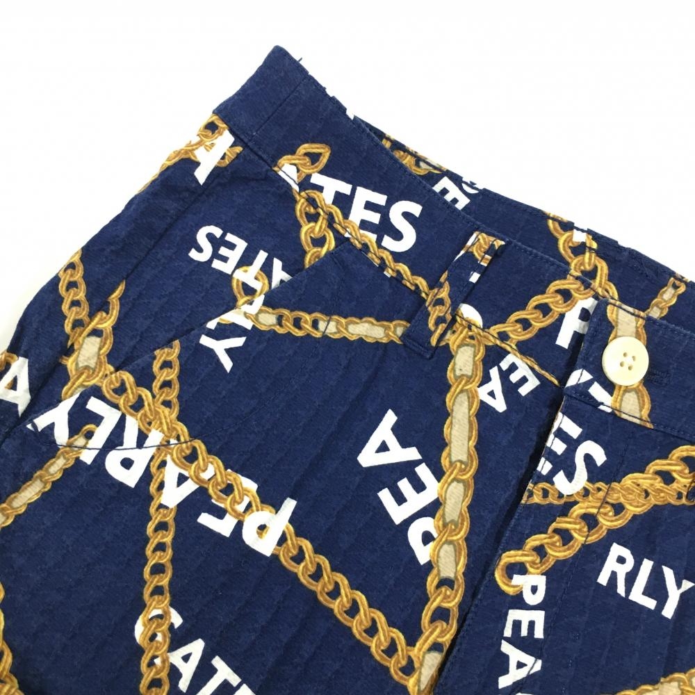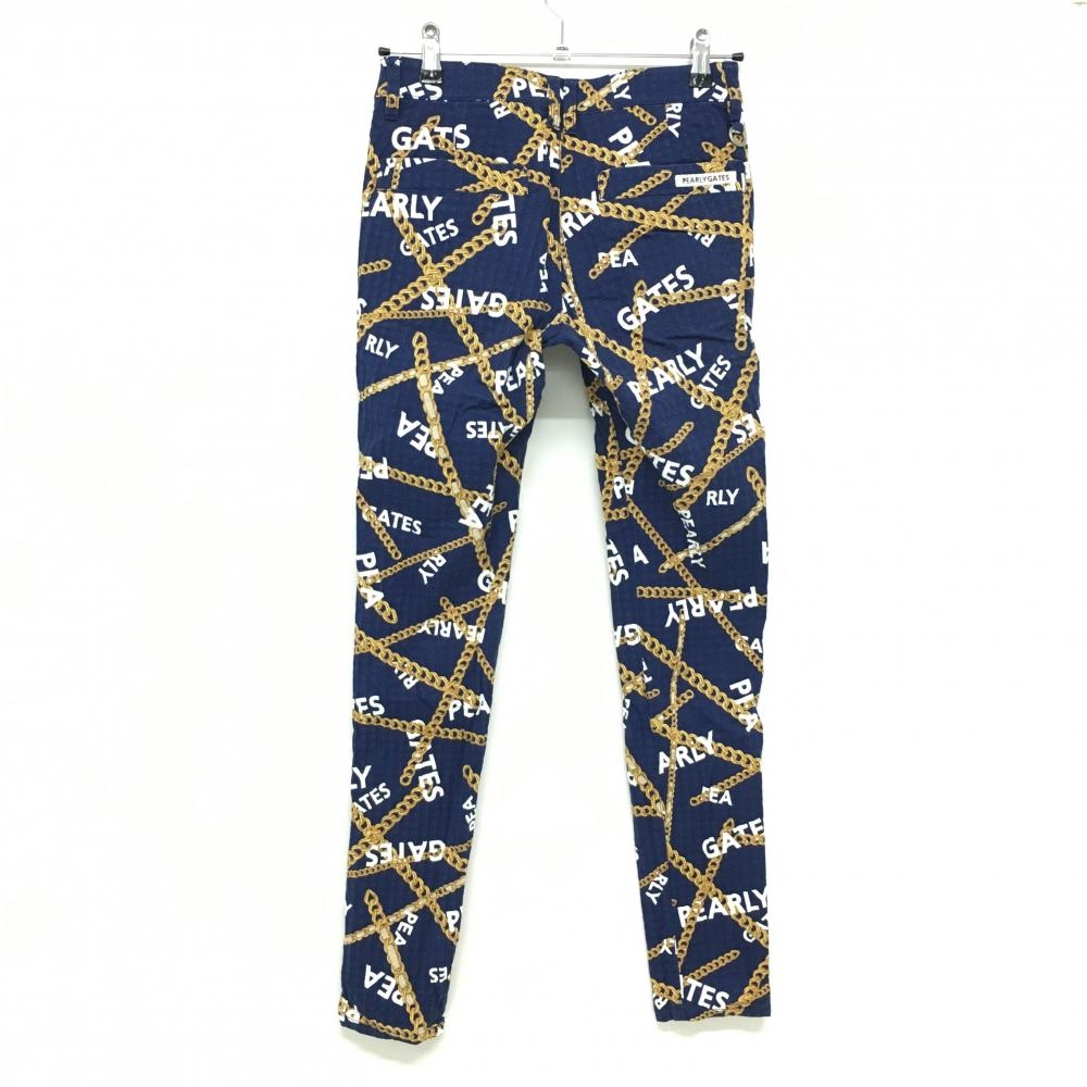 パーリーゲイツ パンツ ネイビー×白×ブラウン系 チェーン総柄 ロゴ総柄 レディース 0(S) ゴルフウェア PEARLY GATES